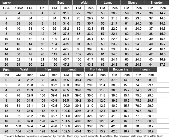 The size between countries is converted by formula, there may be not accurate.