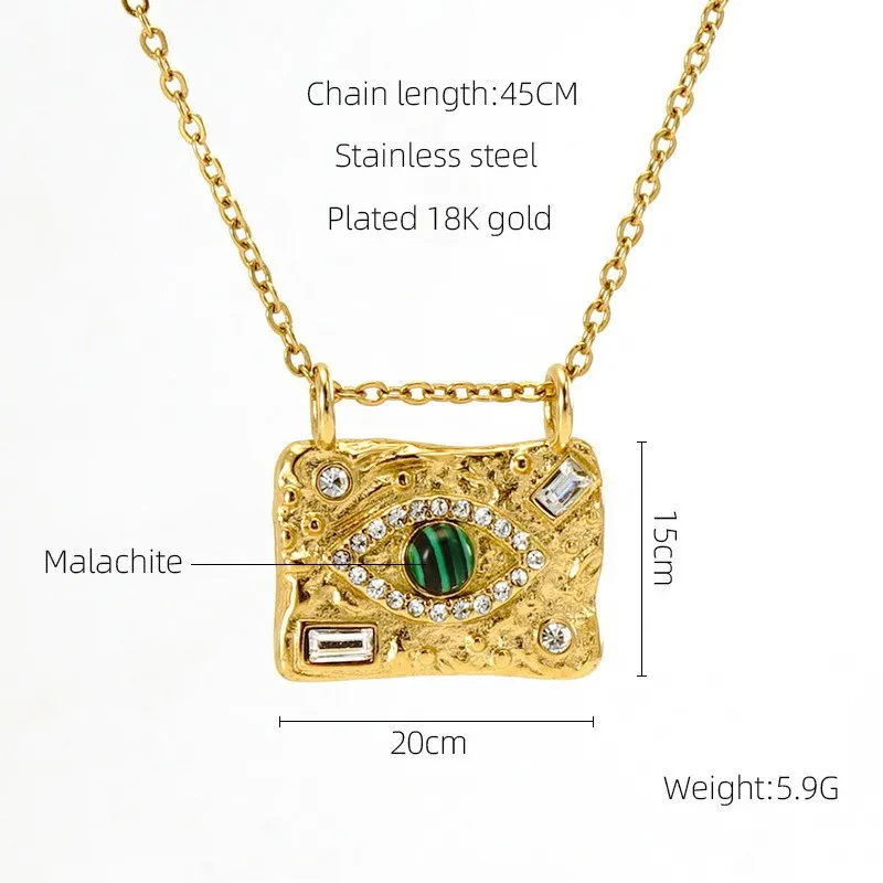 China wholesale zircon Pendant Low price fashion 18K Gold plating stainless steel necklace fresh water pearl Malachite necklace