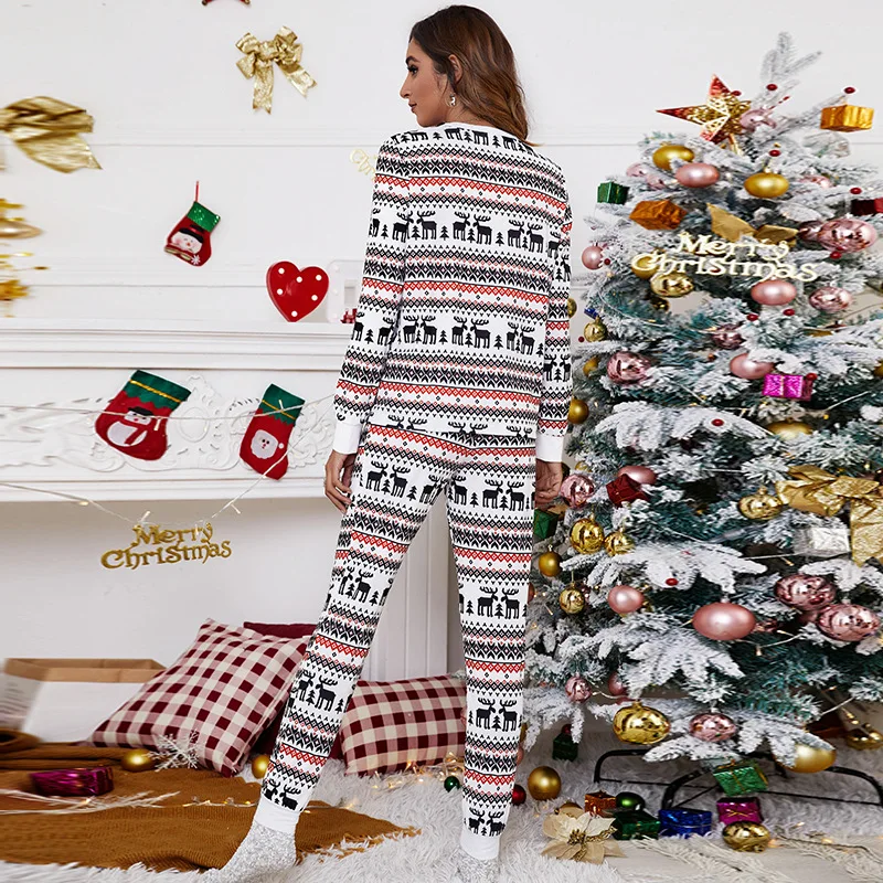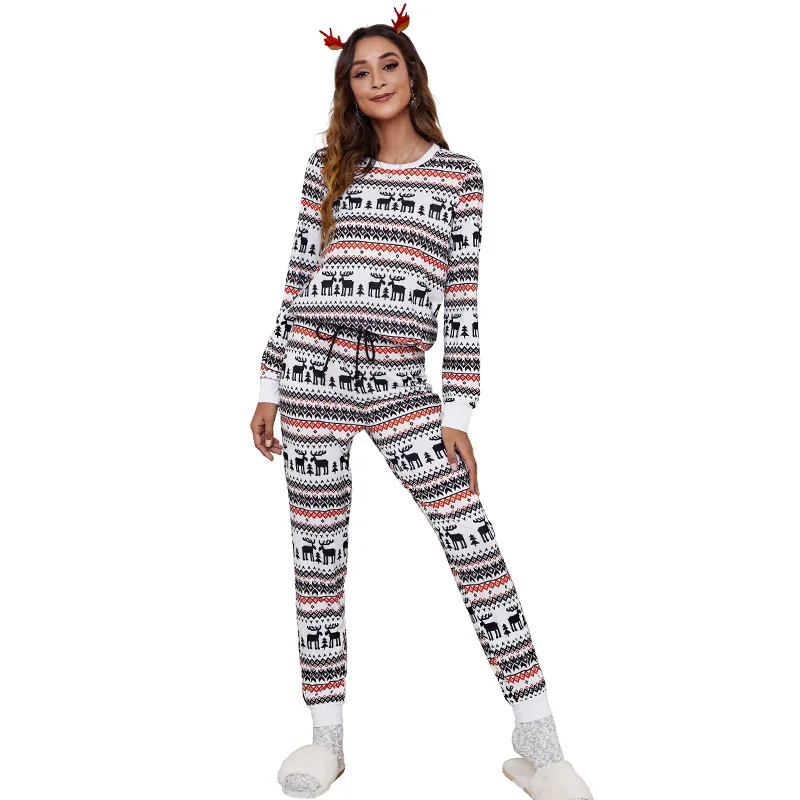 Christmas Home Reindeer Night Clothes Sleepwear Women Casual Loungewear Pajamas Sets