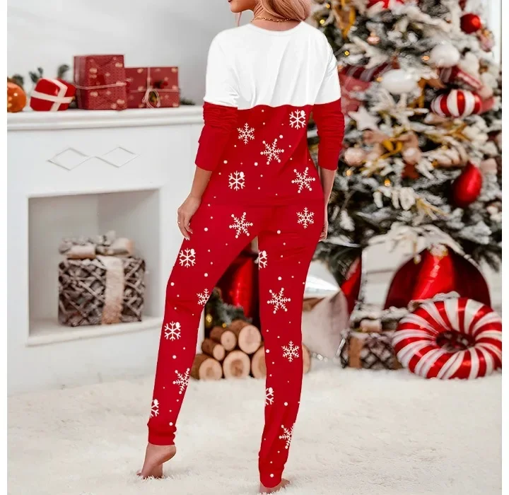 Christmas Home Two Piece Set Woman Snowflake 2024 O-Neck Long Sleeved Tops Elegant High Waisted Casual Pants Pajama Suit Fall