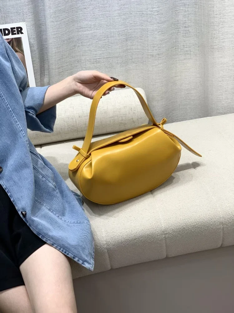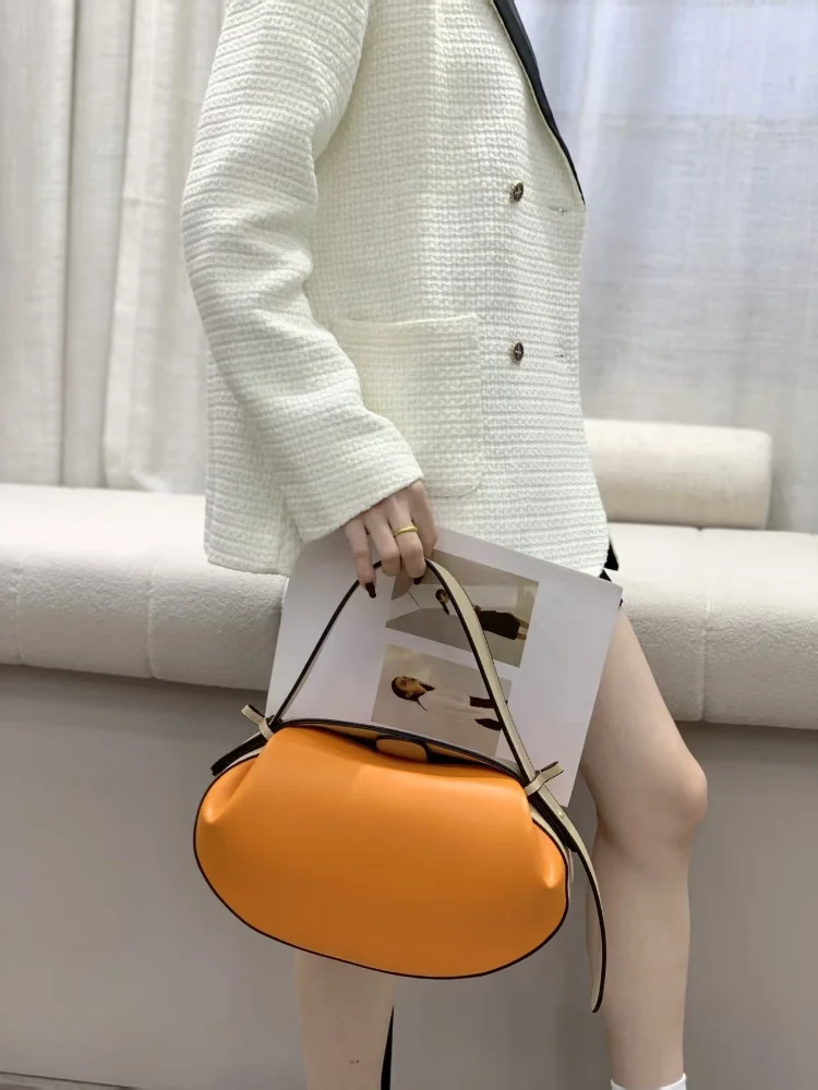Circular Three-dimensional Bowling Bag For Women Fashion Leather Ruched Top Handle Handbag Casual Shoulder Crossbody Bag Purses
