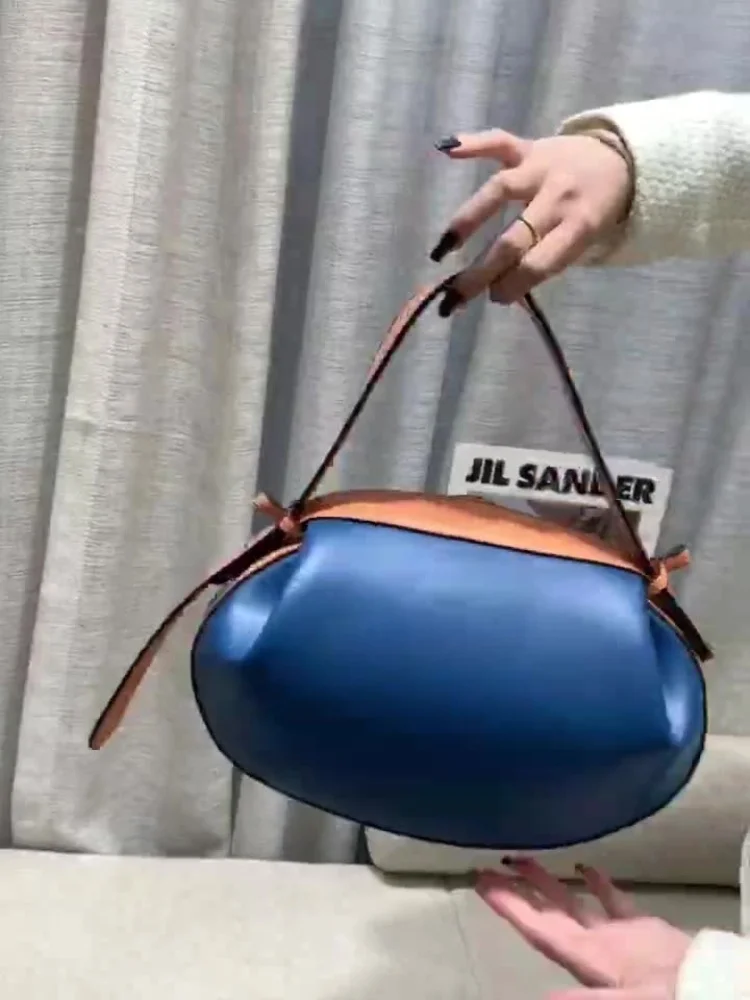 Circular Three-dimensional Bowling Bag For Women Fashion Leather Ruched Top Handle Handbags Casual Shoulder Crossbody Bag Purses