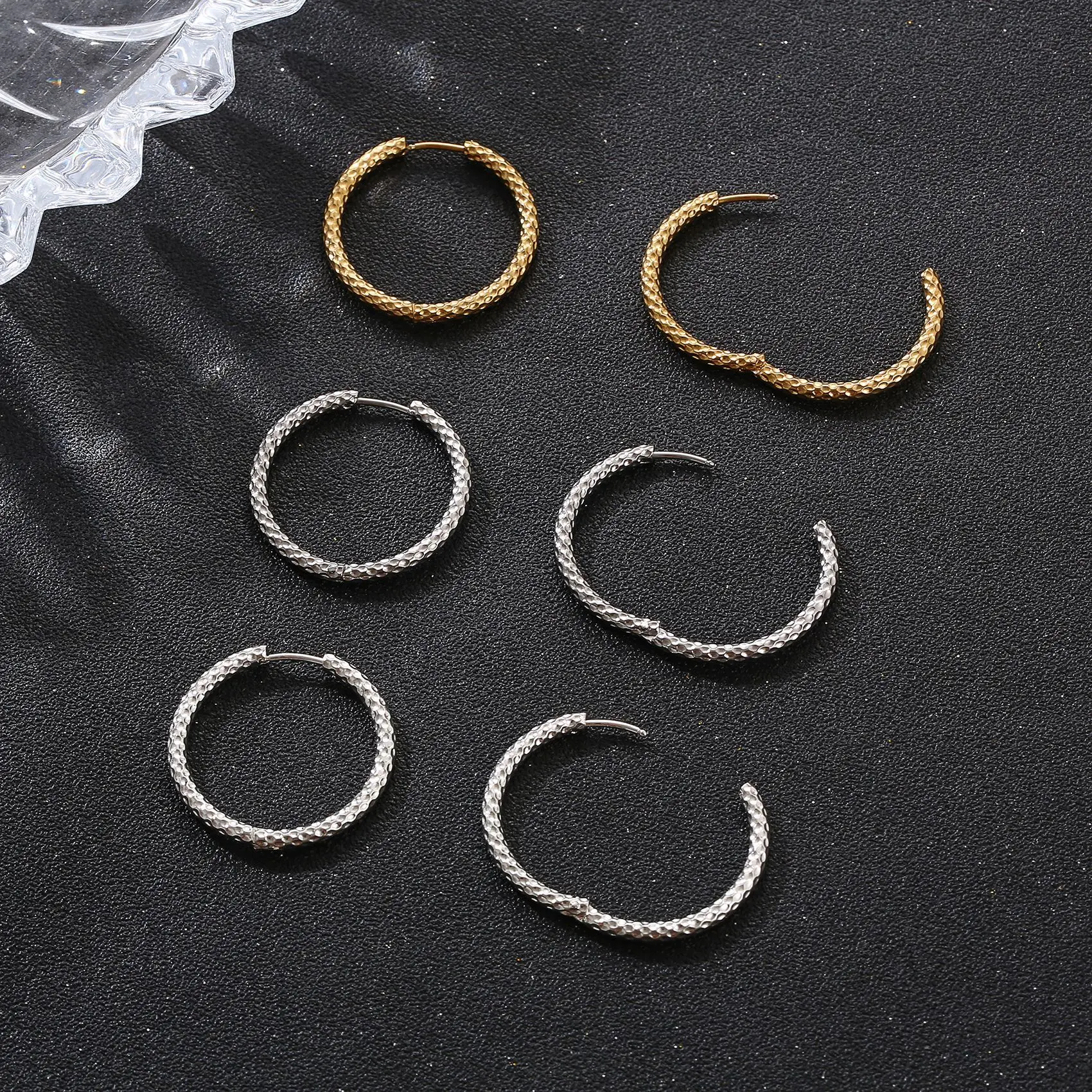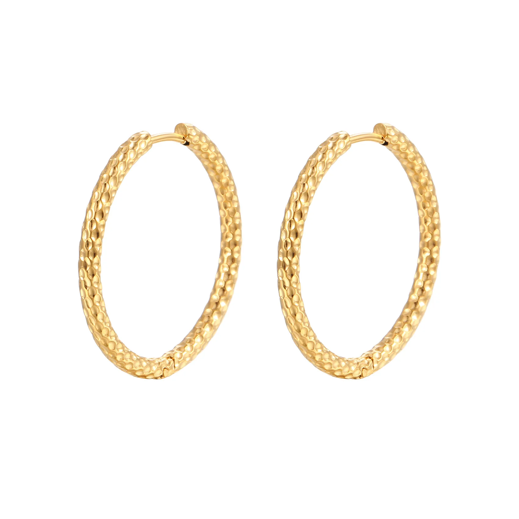 Classic big gold hoop earrings for women 14k real gold hand engraved diamond-cut round hoop earrings