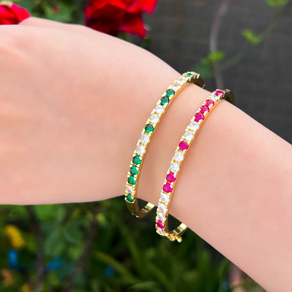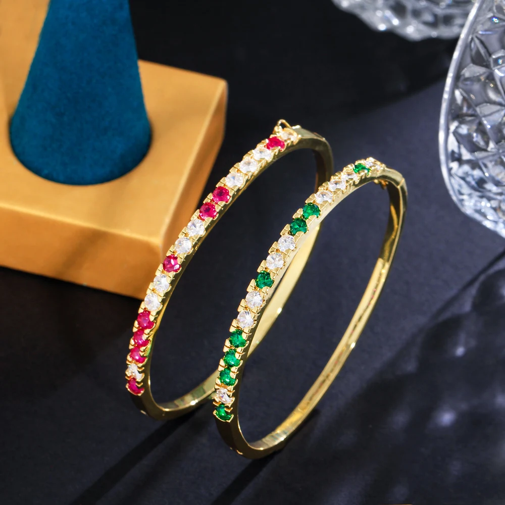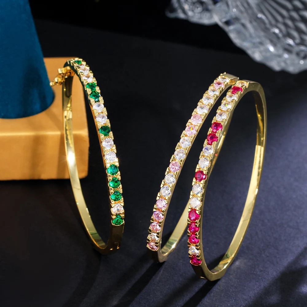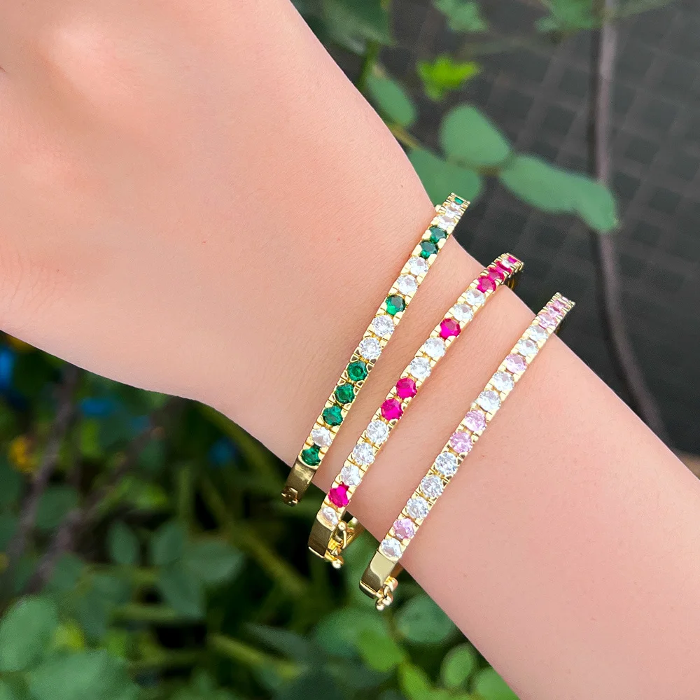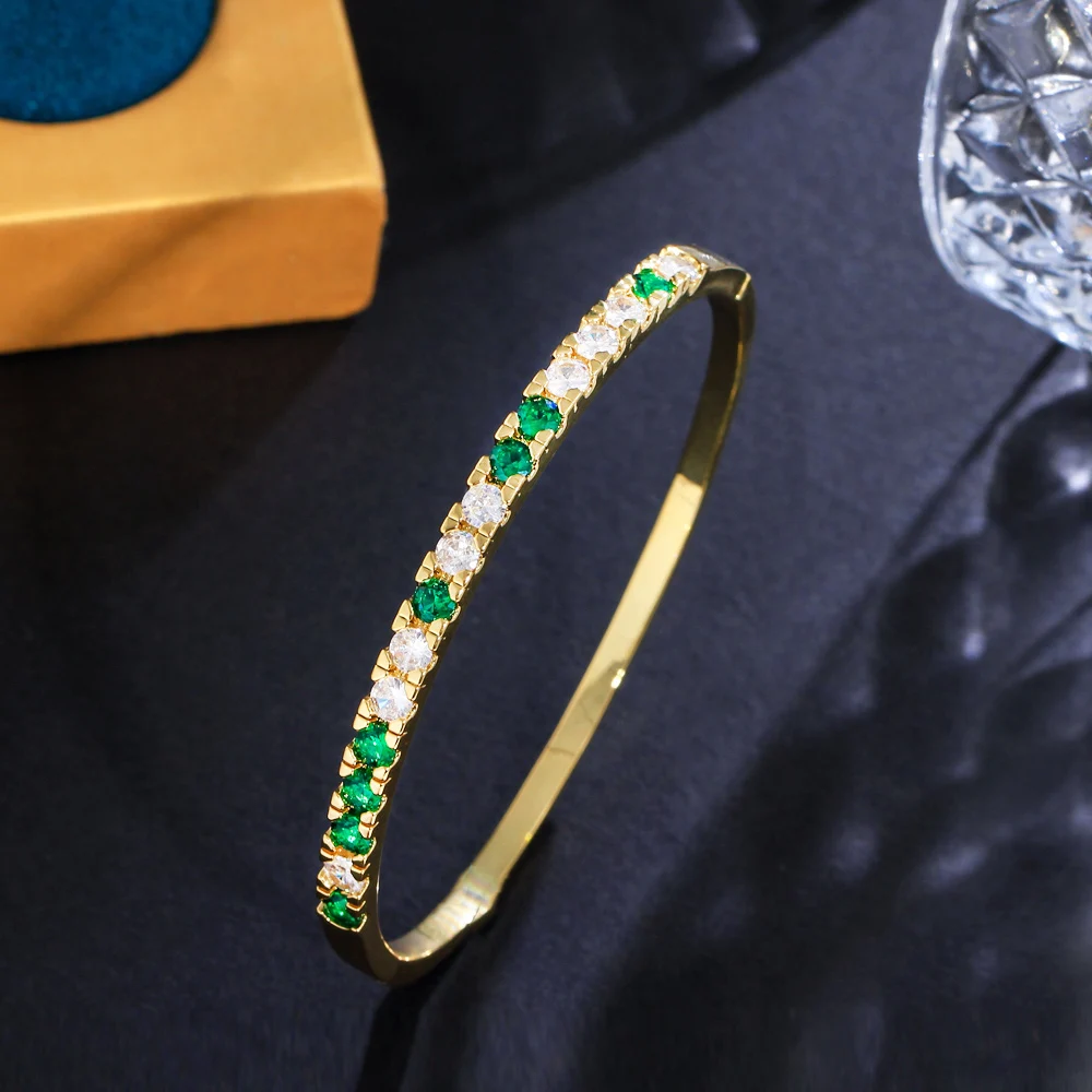 Classic Bling Round Cubic Zircon Pave Gold-Plated Wedding Green Tennis Bangle for Women Trendy Jewelry Bracelets Accessories