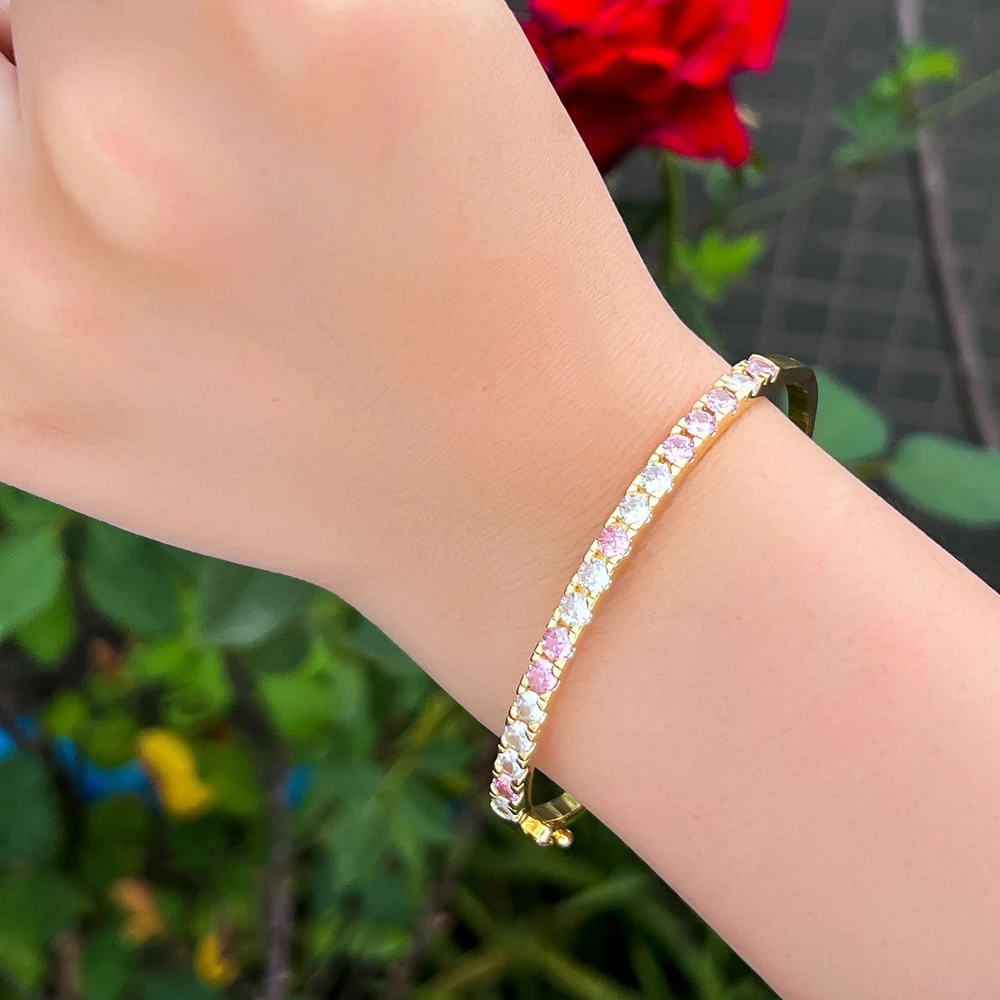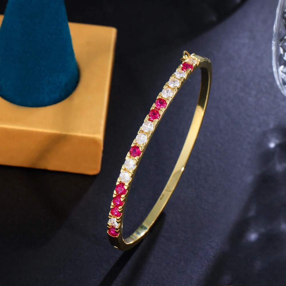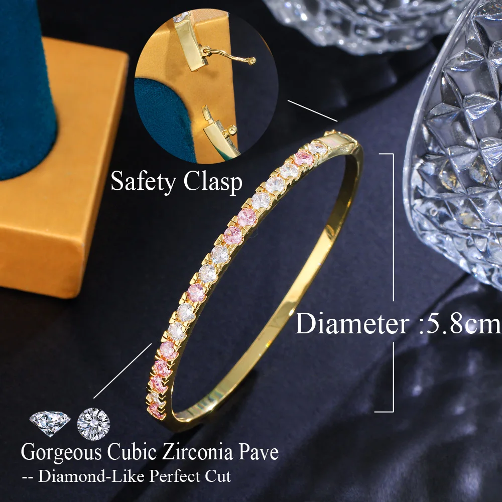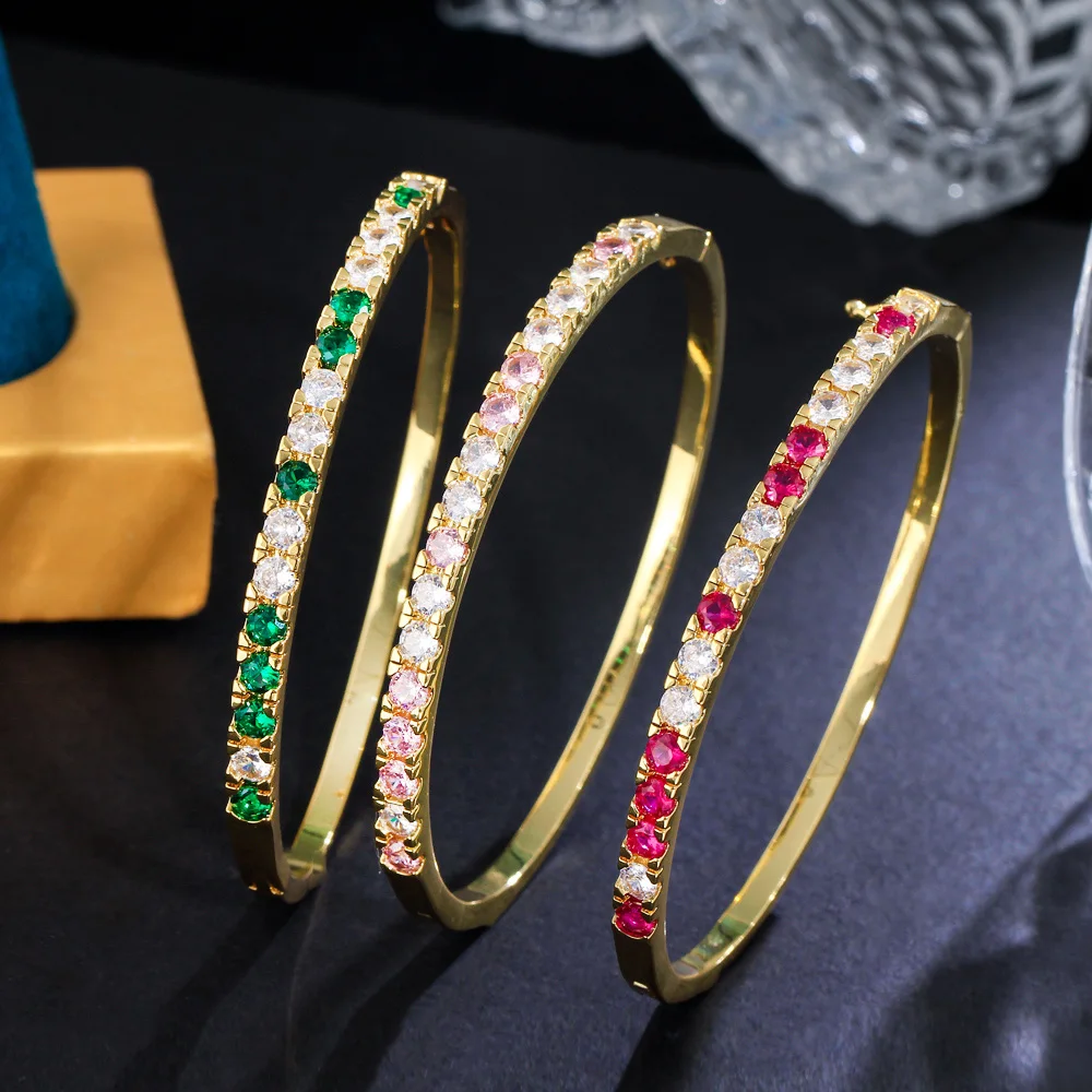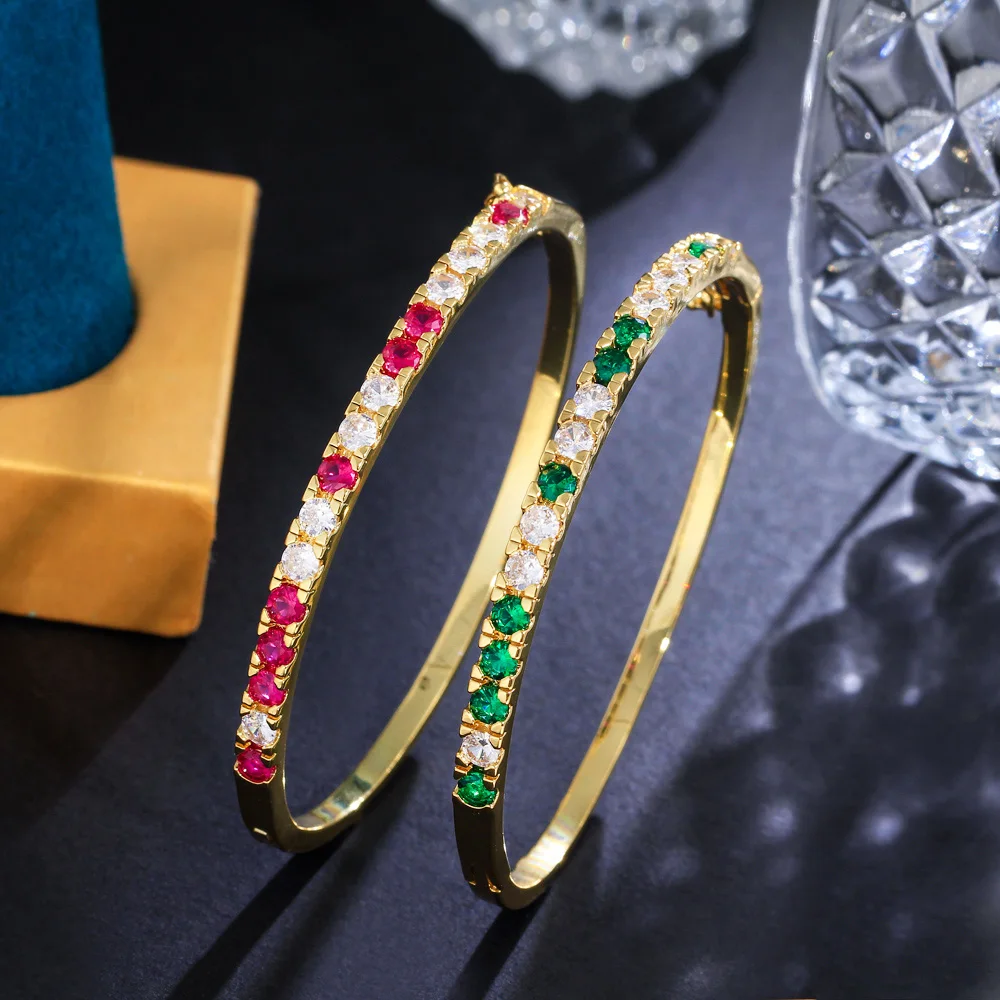 Classic Bling Round Cubic Zircon Pave Gold-Plated Wedding Green Tennis Bangle for Women Trendy Jewelry Bracelets Accessories