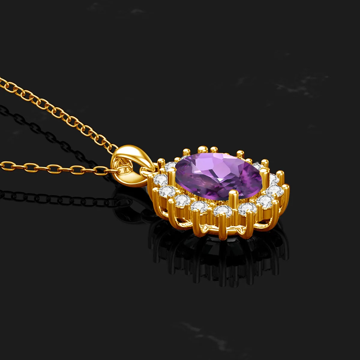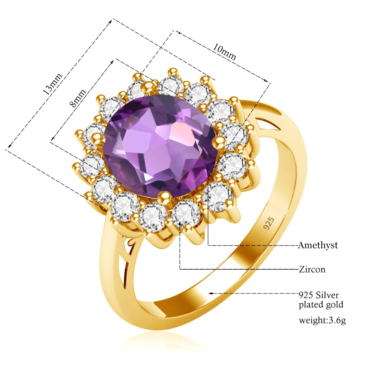 Classic Design Princess Diana Women's Jewelry Sets Sterling Silver Gold Plated Amethyst Birthstone Set Jewelry