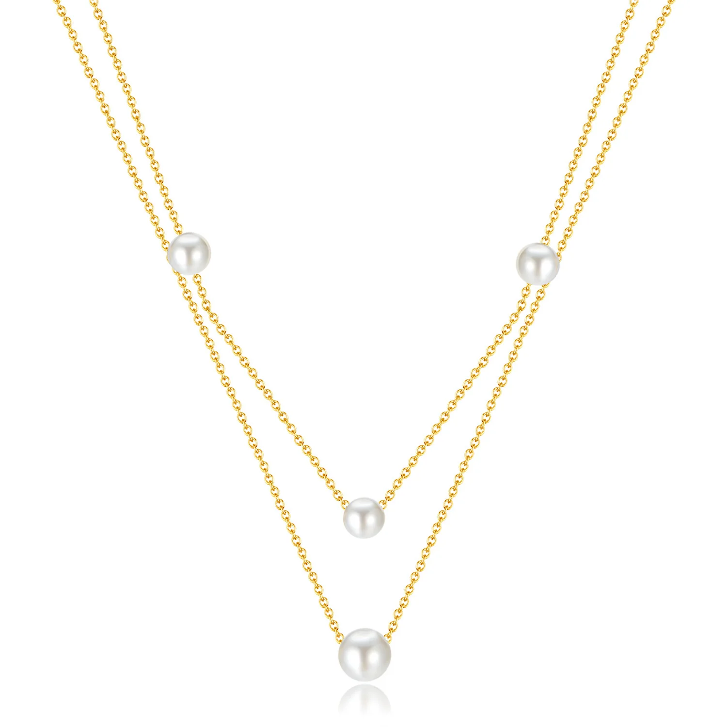 Classic Gold Plated Stacked Stainless Steel Jewelry Unisex Charm Necklace for Wedding Party or Engagement Perfect Gift