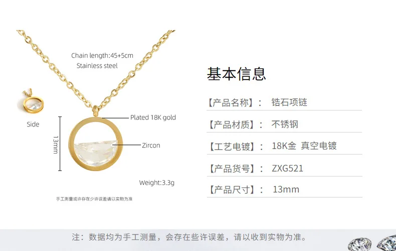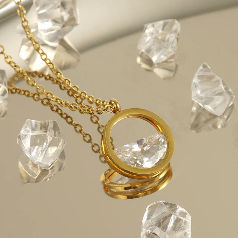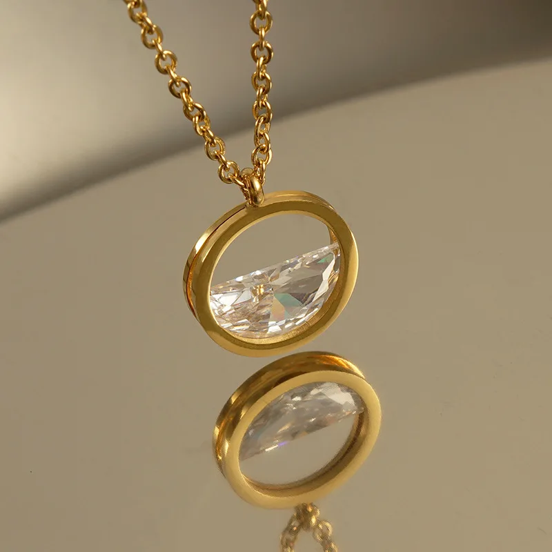 Clear And Transparent Crystal Necklace Pendant Stainless Steel Exquisite Necklace High Quality 18K Plated Charm Collar Jewelry