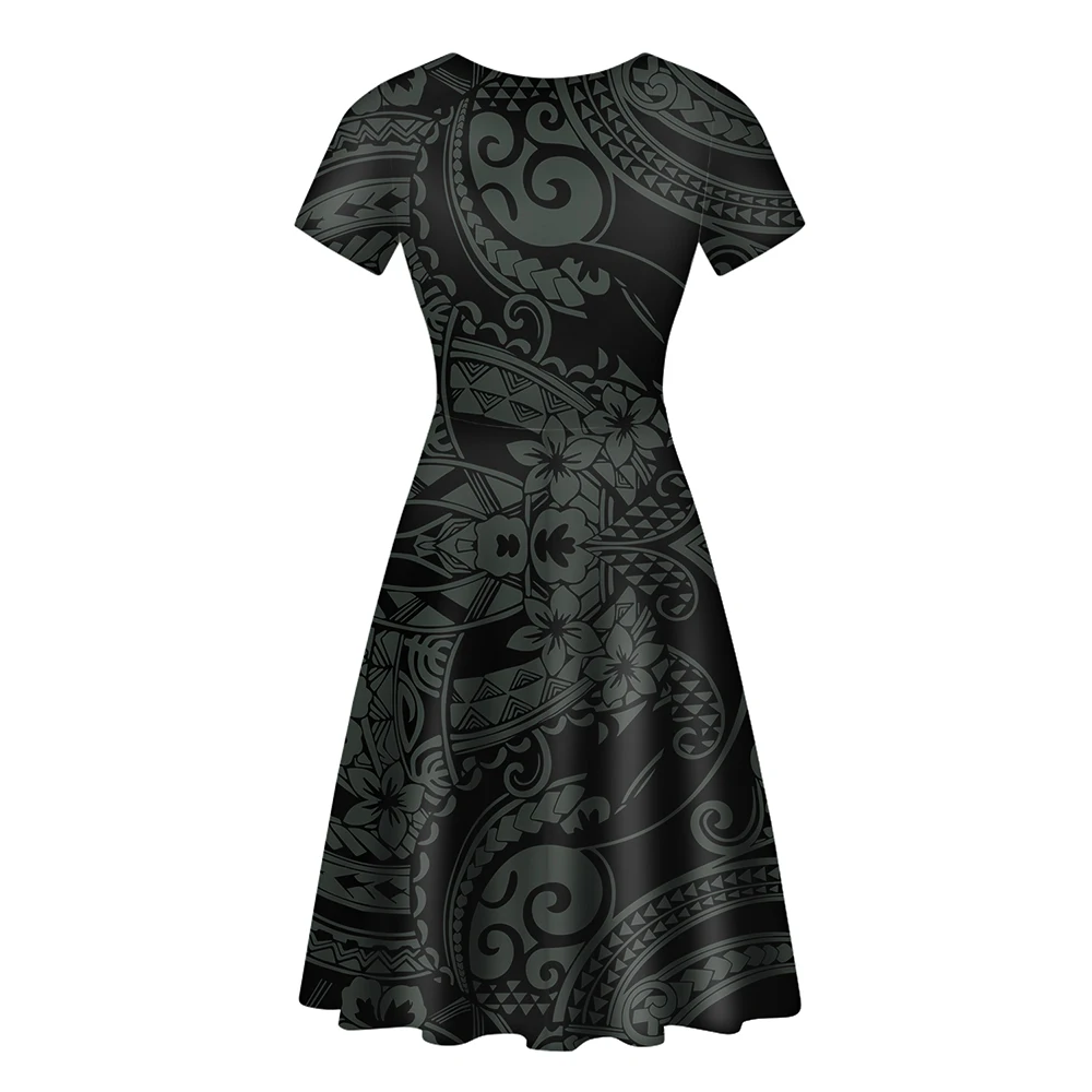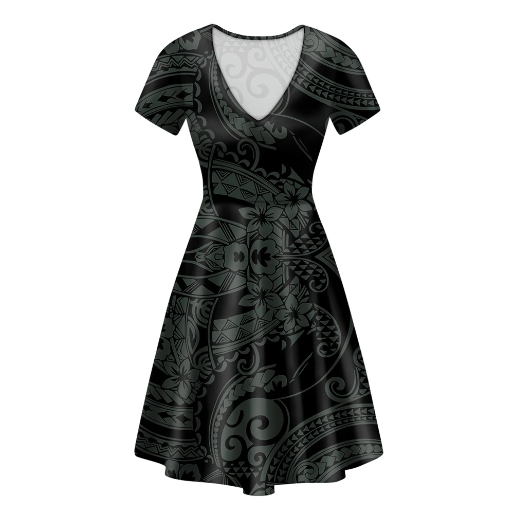 Clothing Female Wholesale Fashion Clothes Women Lounge Wear Polynesian Floral Print V Neck Black Dress Girl Floral Dresses
