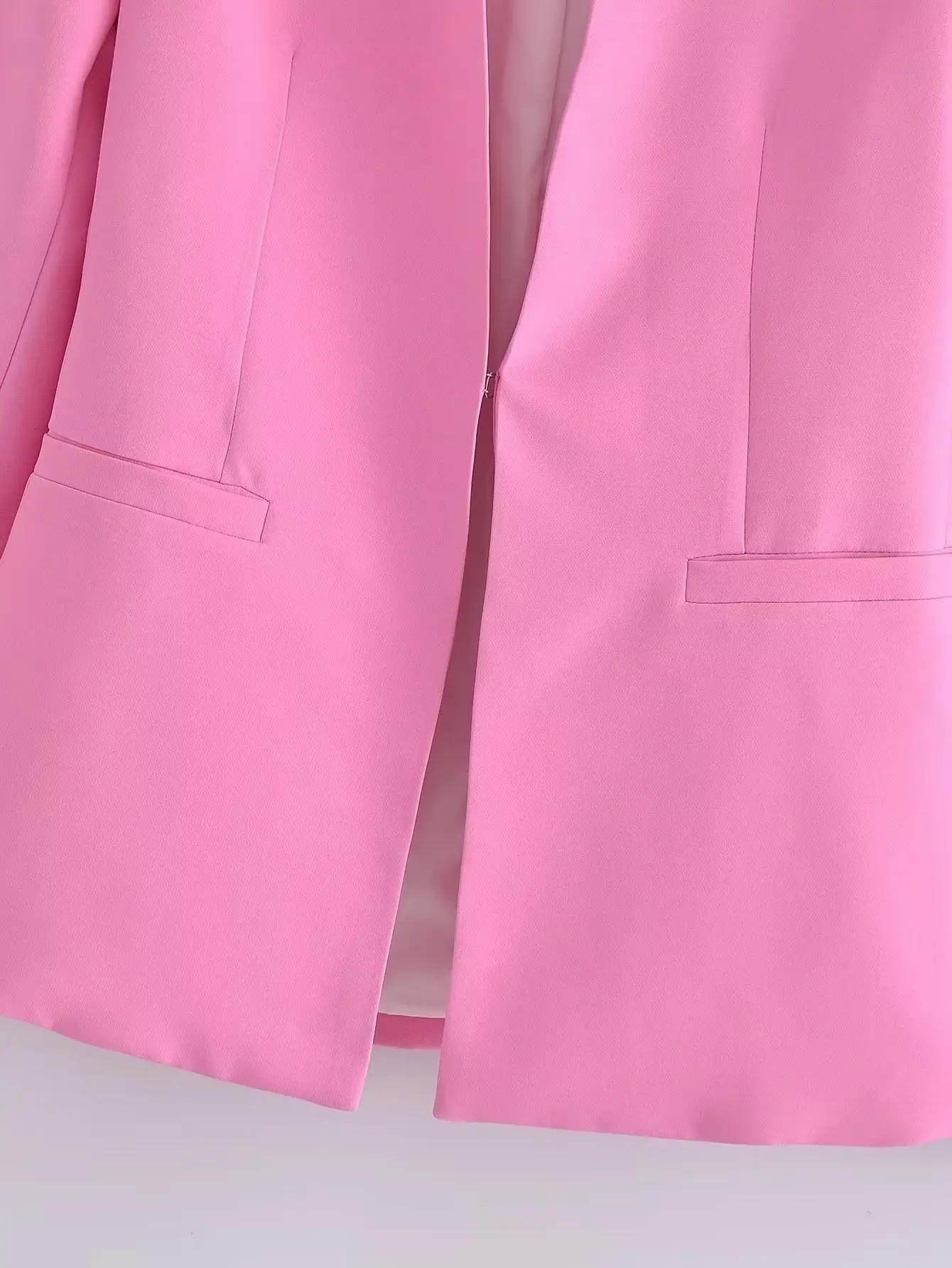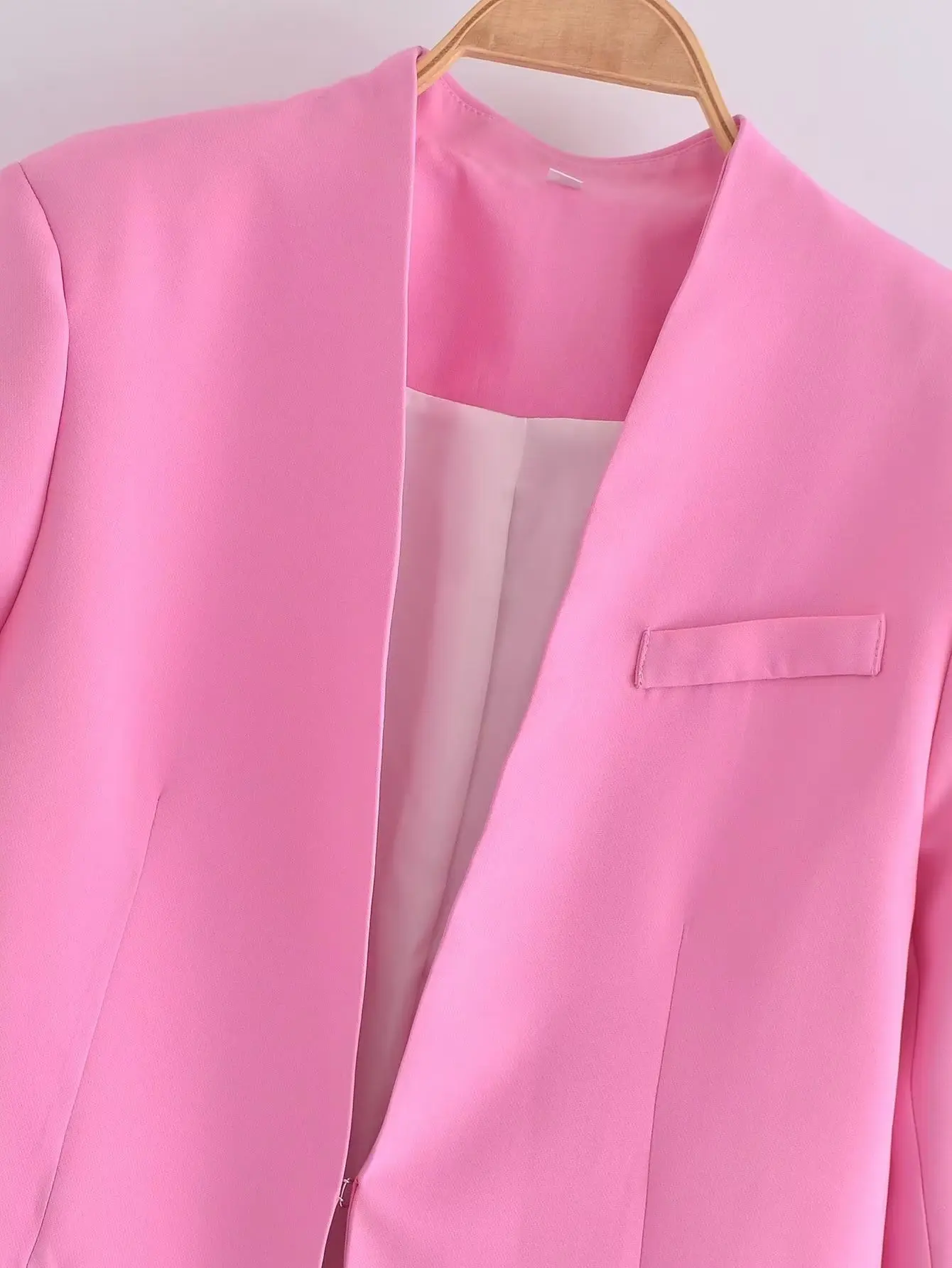 clout Female Office Coats OL Chic Suit Autumn Hooks Closed Pockets Slim Pink Blazers Women 2023 Casual Green Jacket