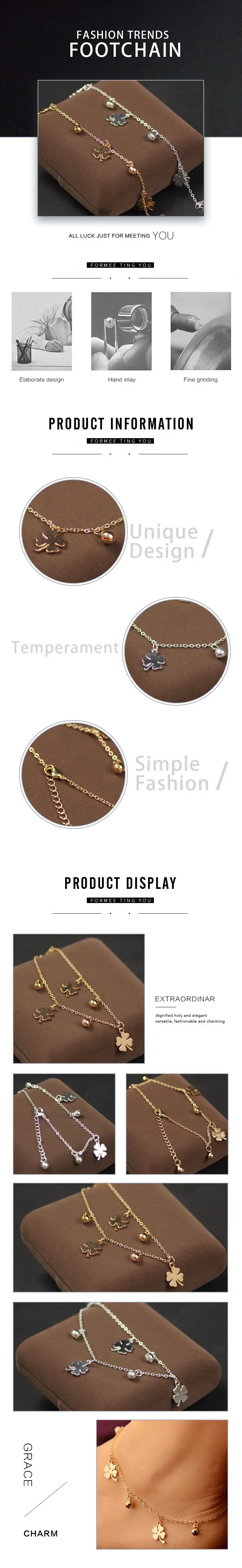 clover shape little bell gold plating cuban link anklet stainless steel anklets foot jewelry