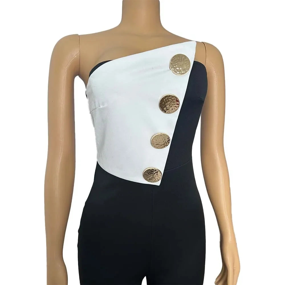 CM.YAYA Elegant Button Strapless Sleeveless Irregular Girl Jumpsuits 2025 Spring Women's Overalls Outfits Night Club One Piece