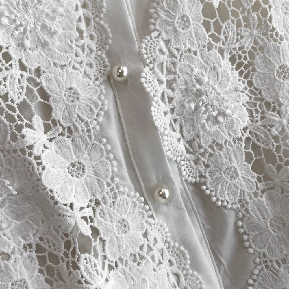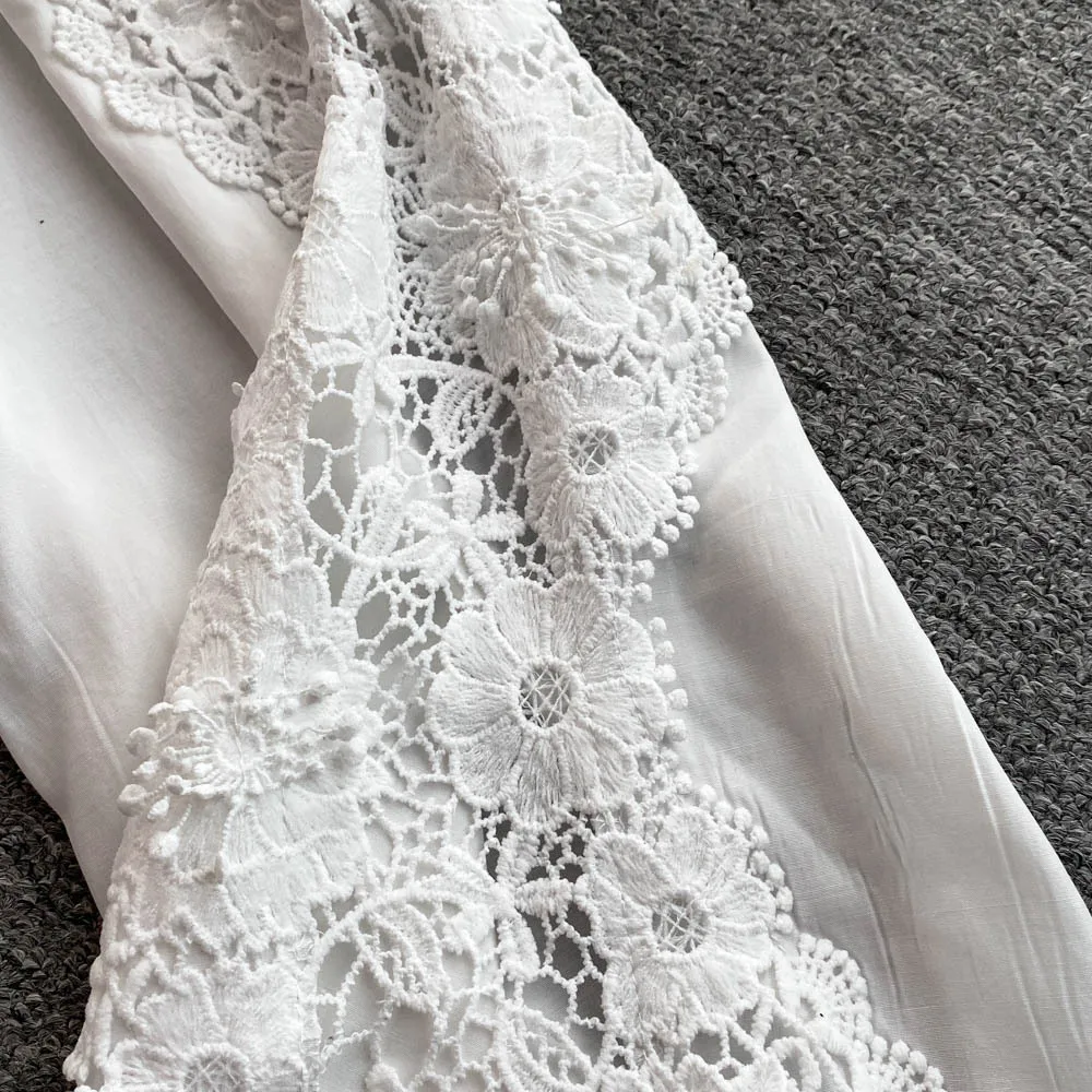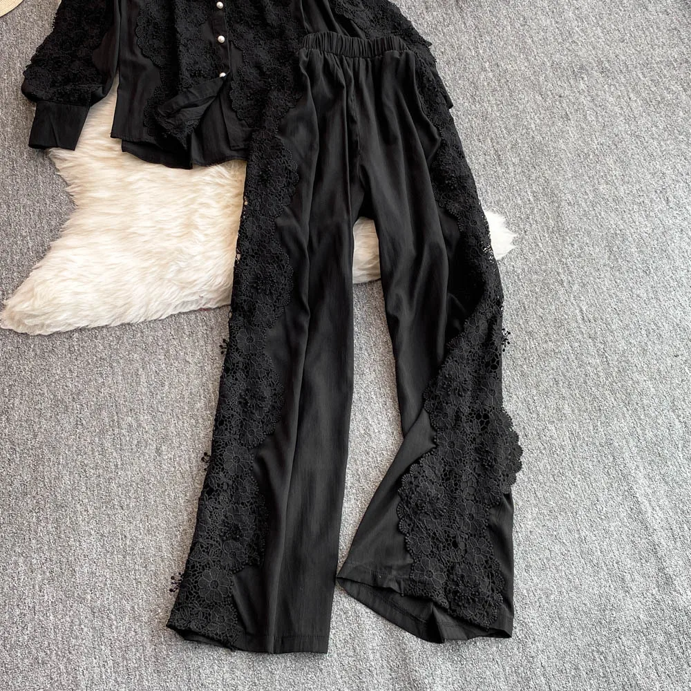 CM.YAYA Fashion Lace Embroidery Patchwork Women's Set Long Sleeve Shirt and Wide Leg Pants 2025 Vacation Two 2 Piece Sets Outfit