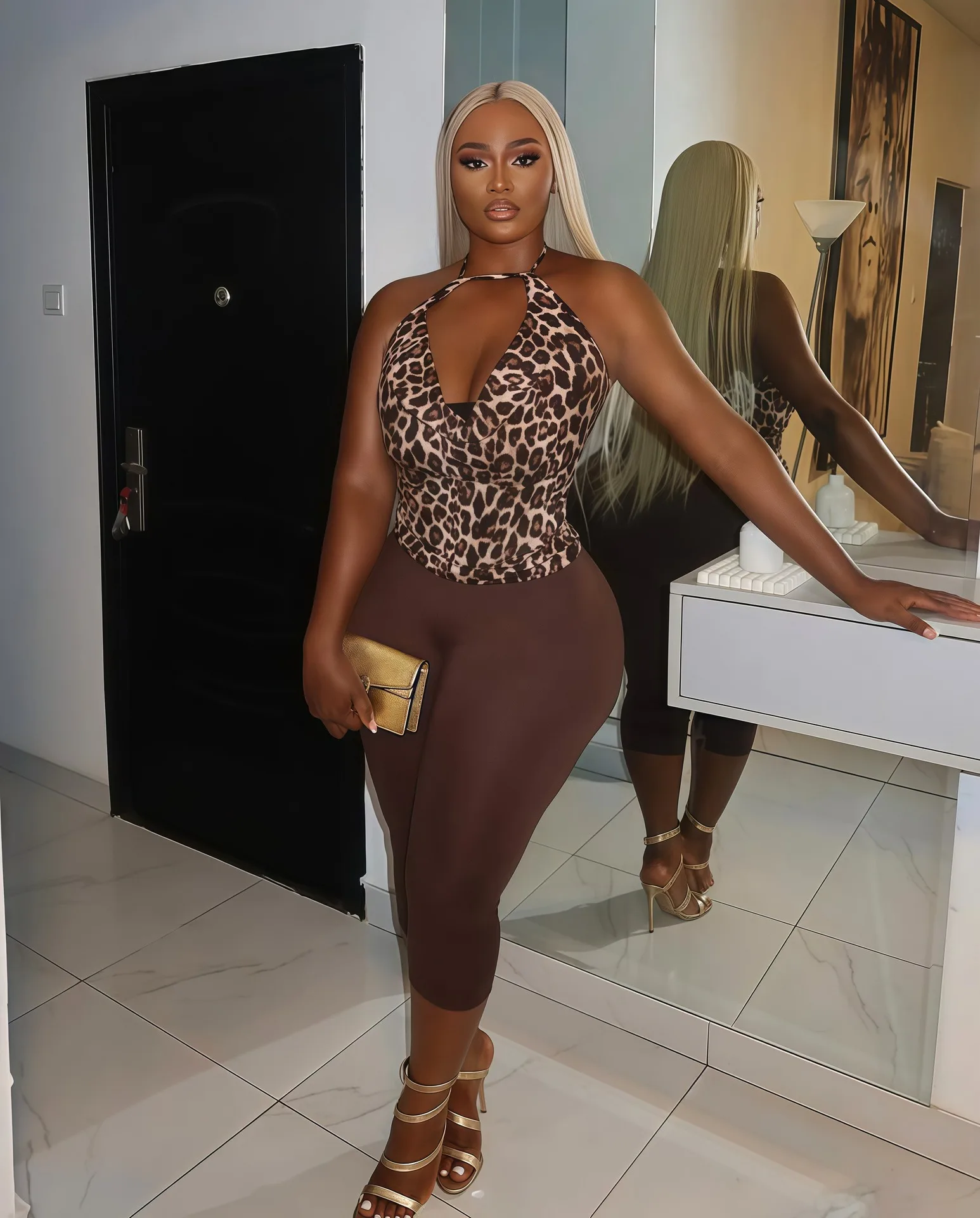 CM.YAYA Fashion Women's Set Sleeveless Halter Leopard Print Tops + Shorts 2025 Summer Sporty Two 2 Piece Sets Outfits Tracksuit