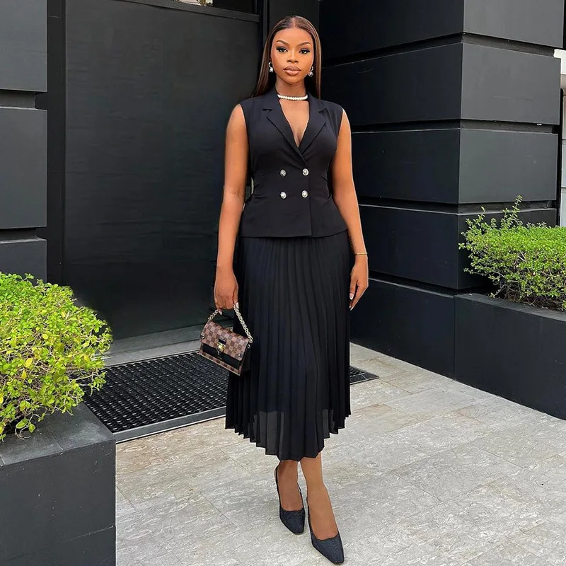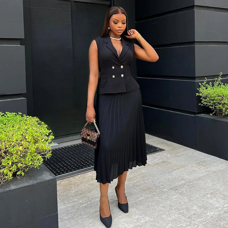 CM.YAYA Street OL Work Women's Set Sleeveless Vest Tops and Pleated Skirts Suit 2024 Summer INS Two 2 Piece Set Outfit Tracksuit