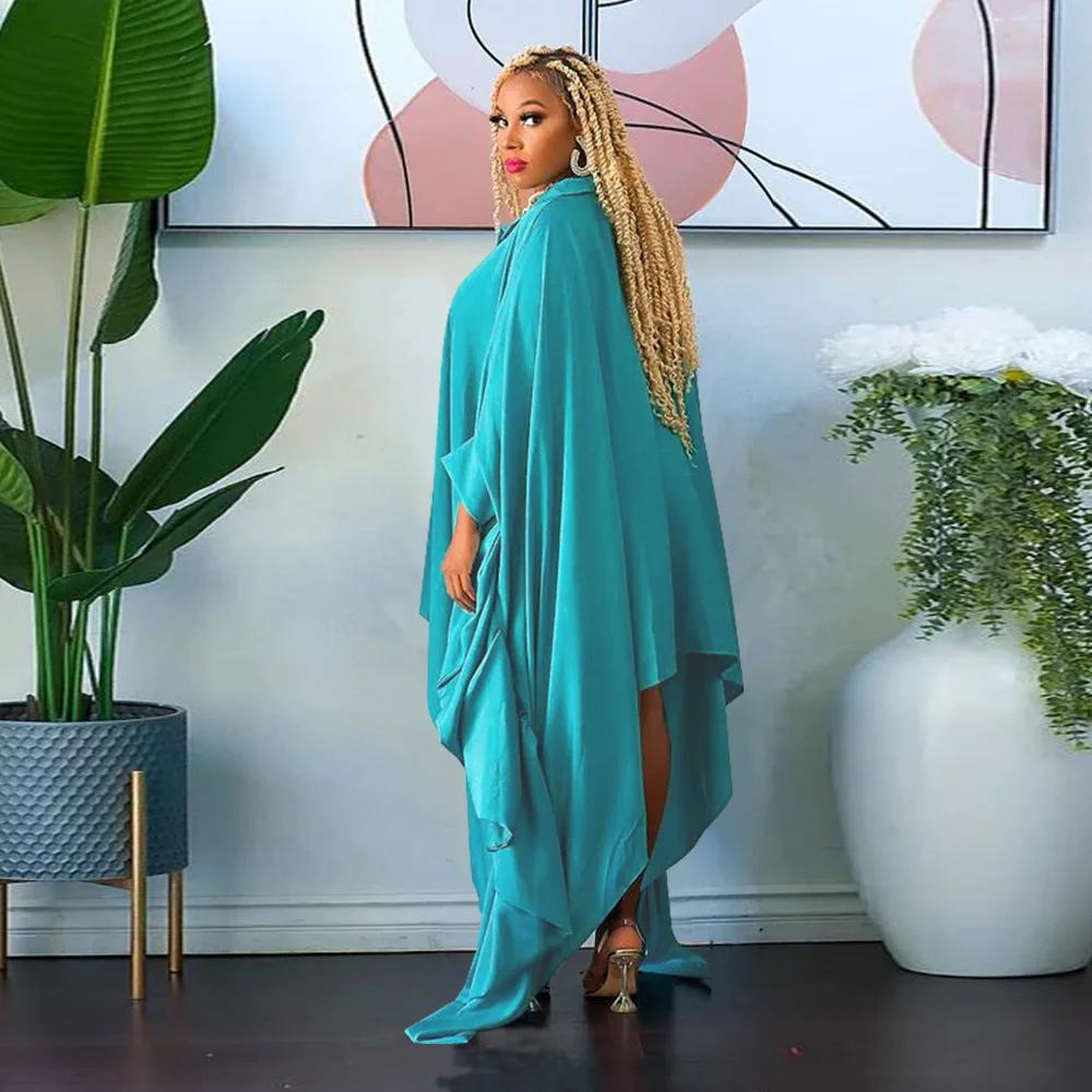 CM.YAYA Women Batwing Long Sleeve Asymmetrical Loose Shirt Style Maxi Long Dress Fashion Vintage Autumn Winter Female Dresses