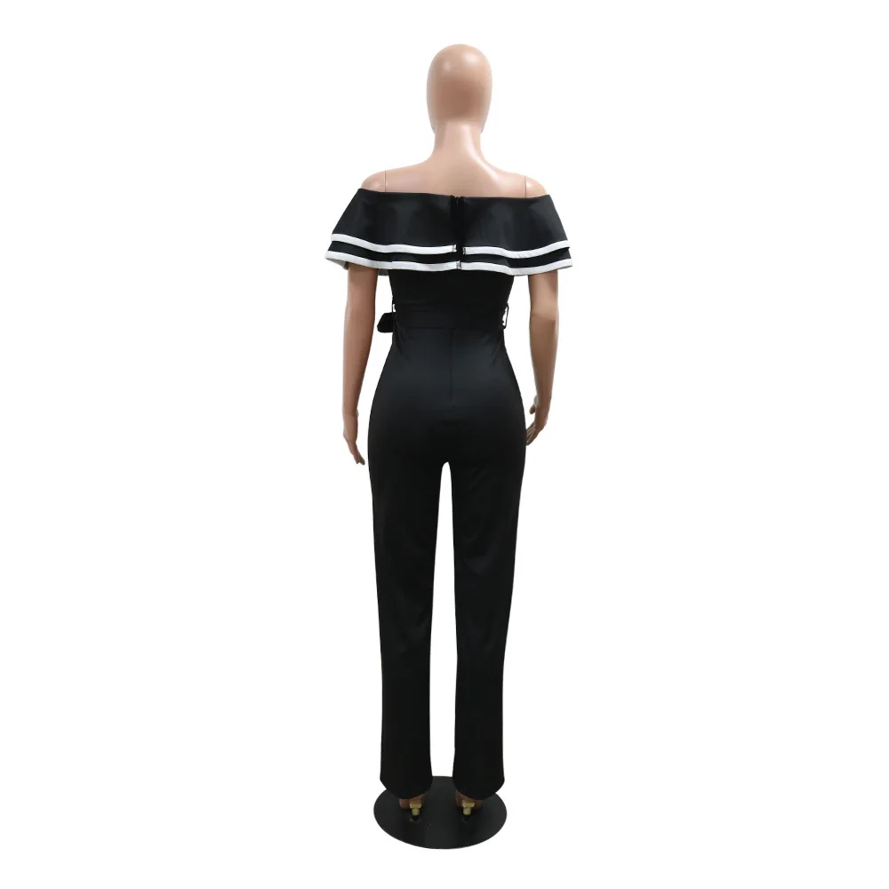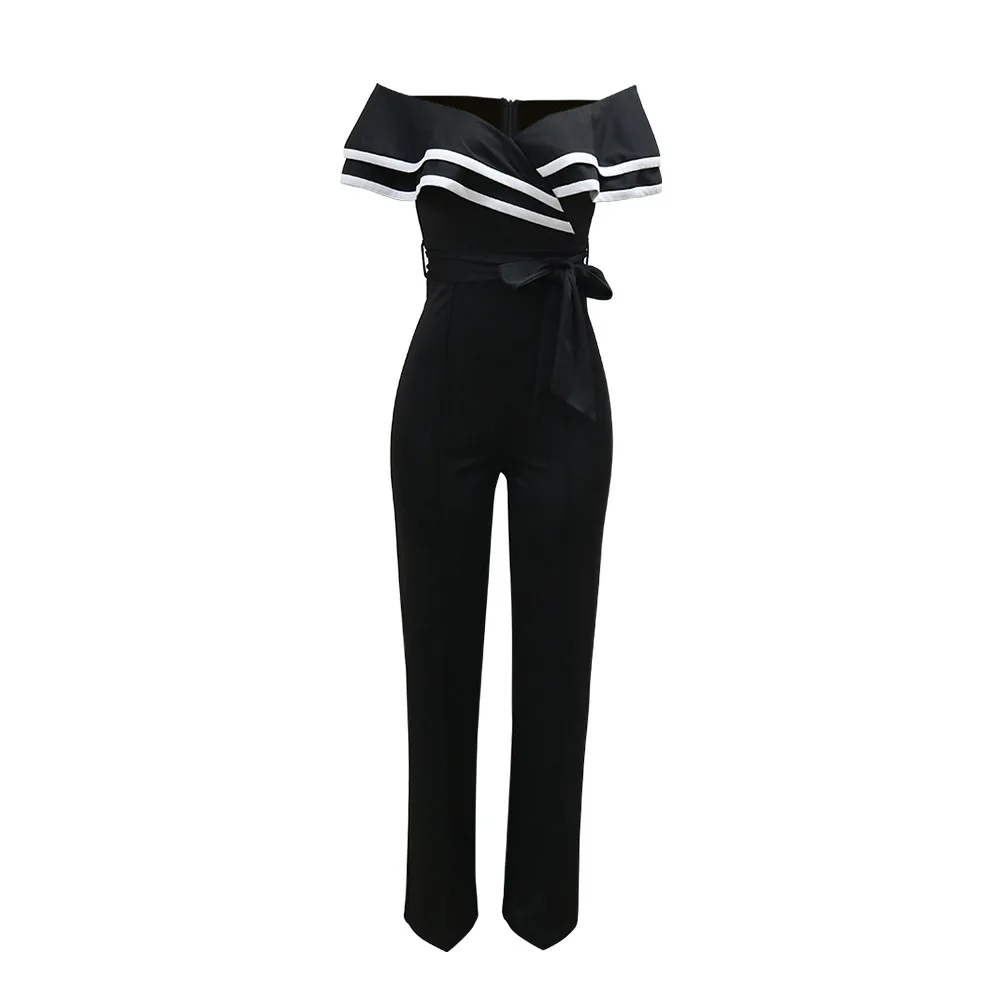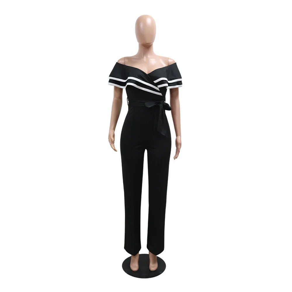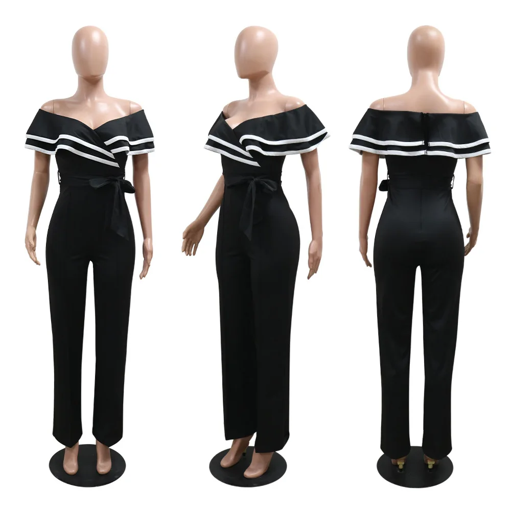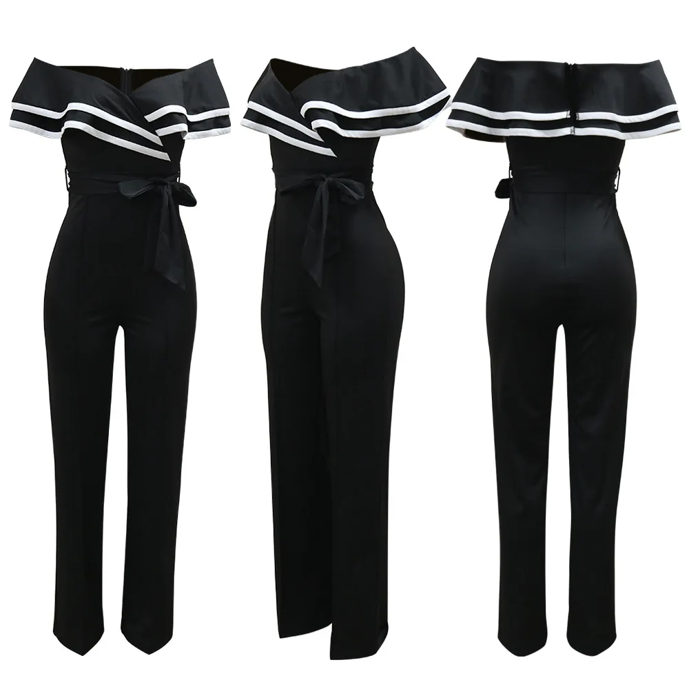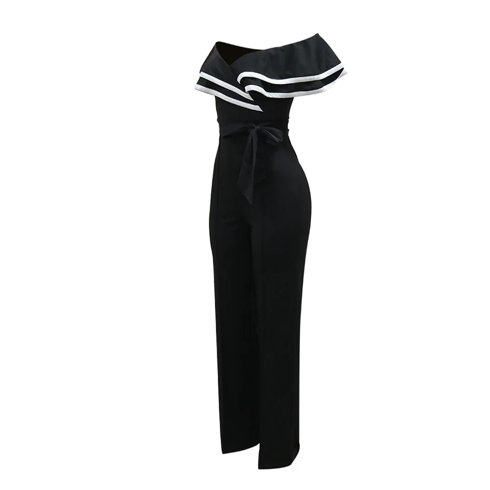 CM.YAYA Women V-neck Off Shoulder Ruffles Wide Leg Jumpsuits 2024 Summer Fashion Sexy Party Playsuit One Piece Suit Rompers