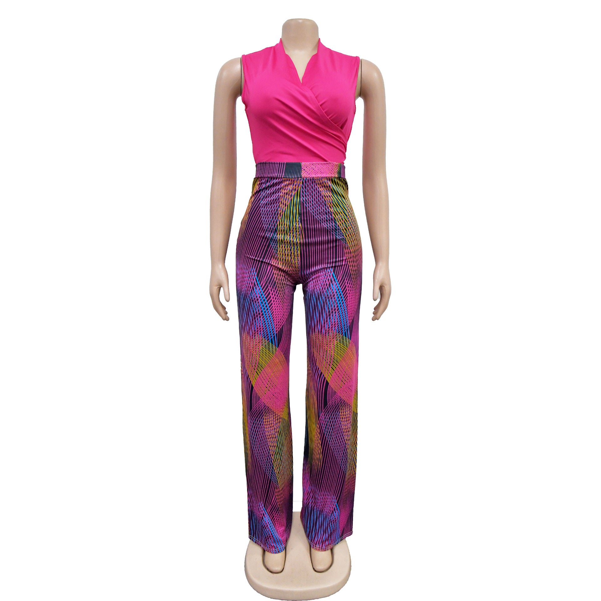 CM.YAYA Women's Set Wrap V-neck Tie Up Tank Top and Galaxy Striped Wide Leg Pants 2023 Street Two 2 Piece Sets Outfits Tracksuit