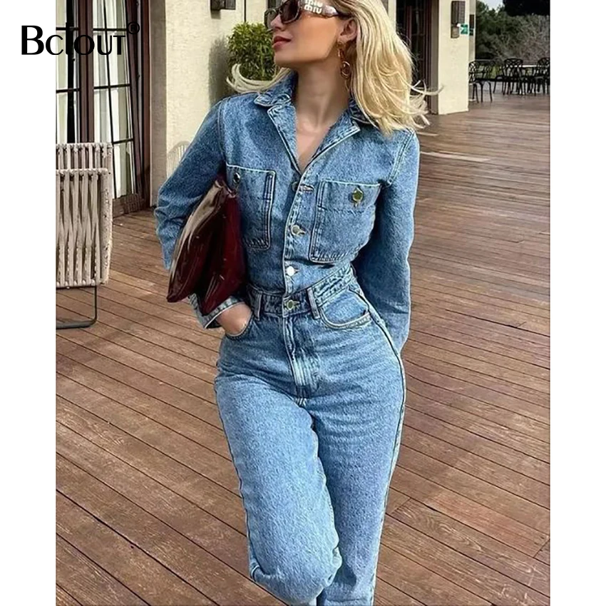Collar Vintage New Long Sleeve Elegant Jumpsuits Y2k Streetwear Woman Jean Overalls Women Denim Jumpsuit Bclout 2023 Turn Down