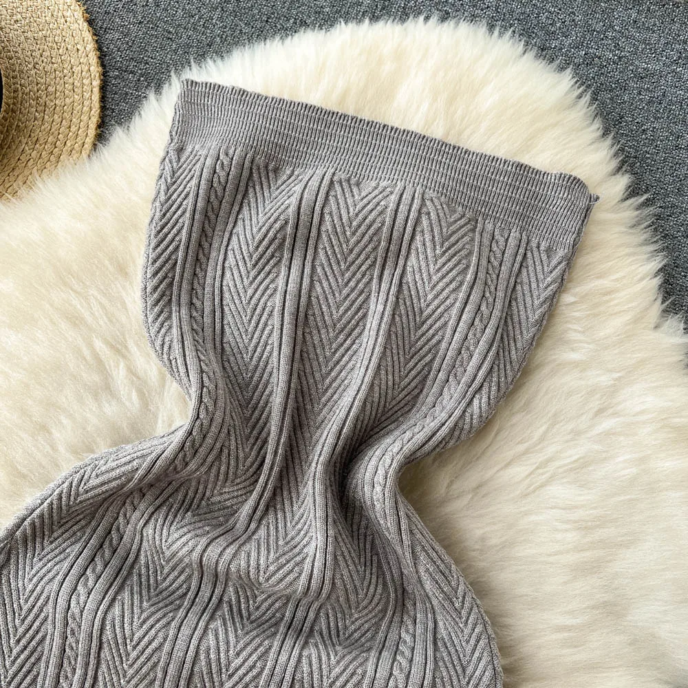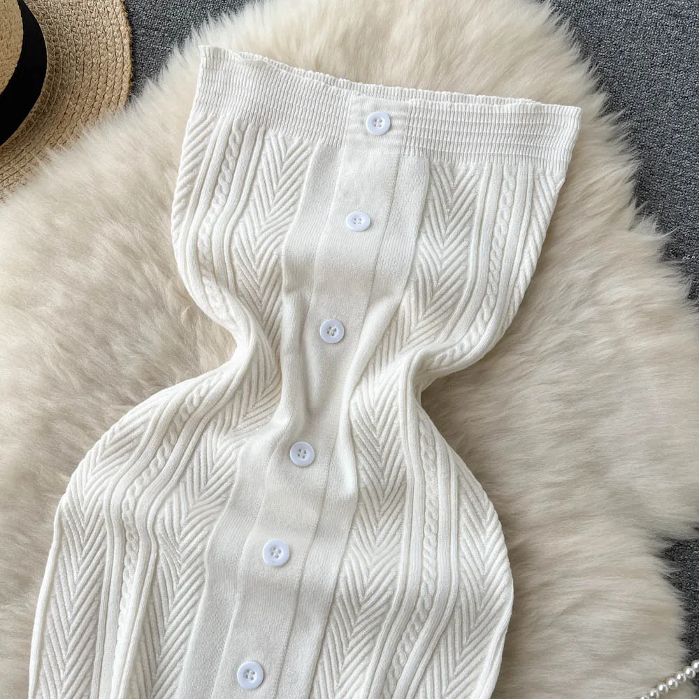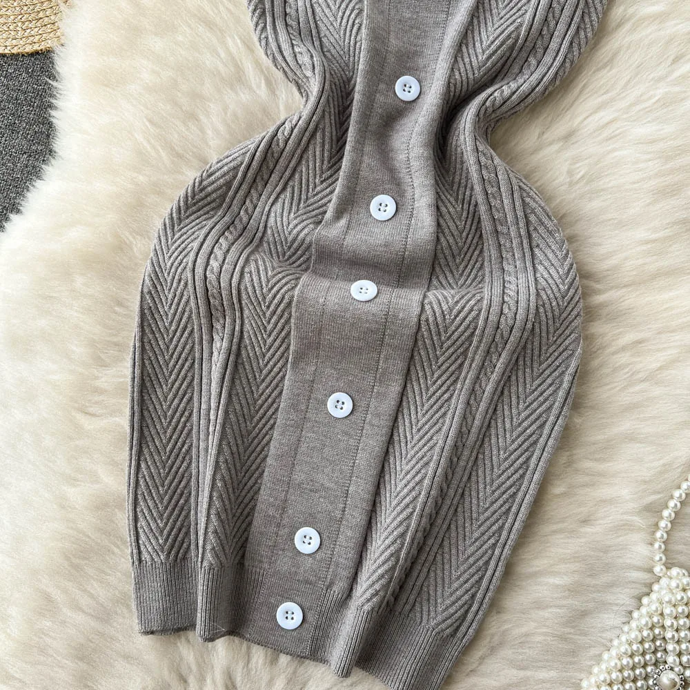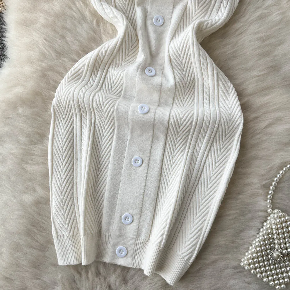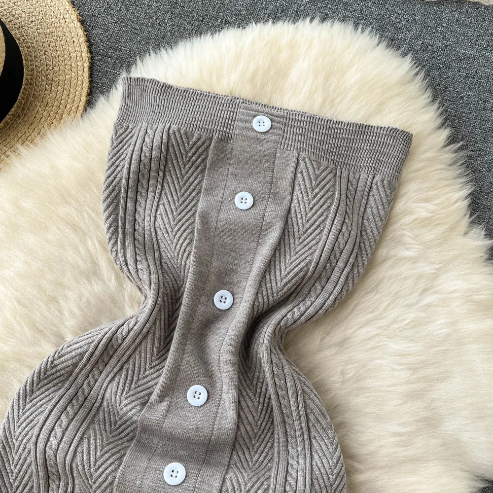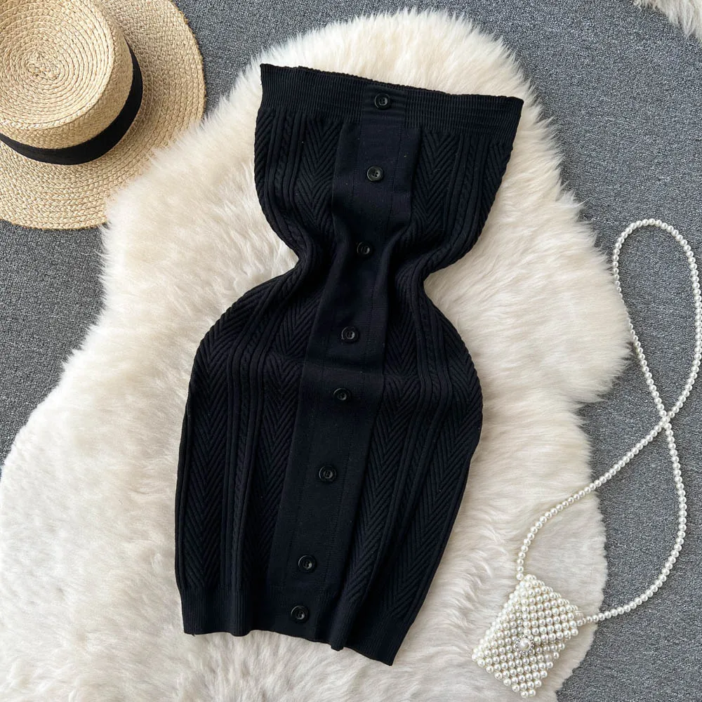 collarless sexy Hepburn style single breasted knitted buttock dress