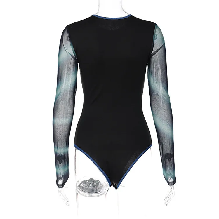 Colorful O Neck Long Sleeves 3D Print Sexy Bodycon Skinny Tops 2024 Spring Fall Fashion Bodysuit