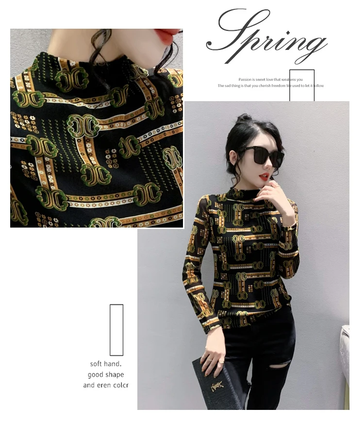 Cotton Fashion Floral Printing Long-sleeved T-shirt Blouse Female Slim Fit Plus Size Shirt Summer graphic Woman T shirts