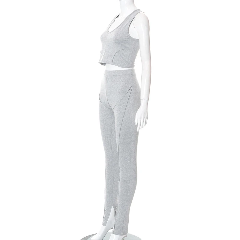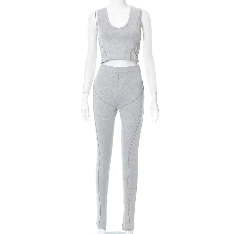 Crop Top And Pants Fit Fashion Casual Sleeveless Solid Women 2 Piece Set