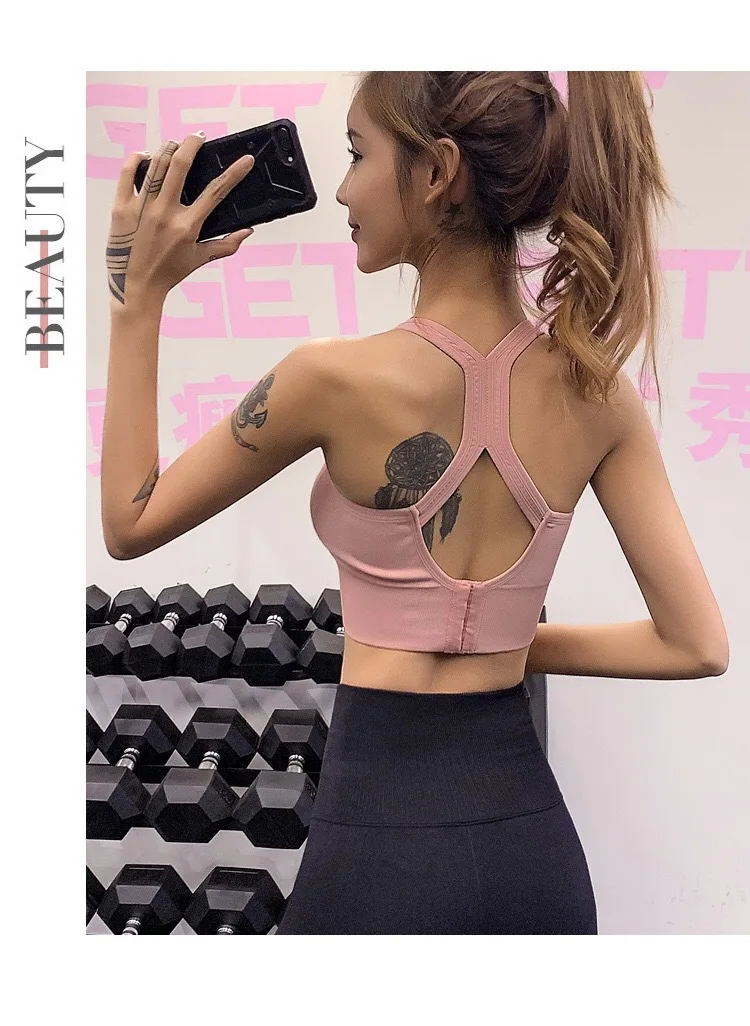 Cross Hollow Beauty Back Wirefree Fit Sujetador Deportivo Running Fitness Yoga Bra Seamless Open Back Sports Bras For Womens