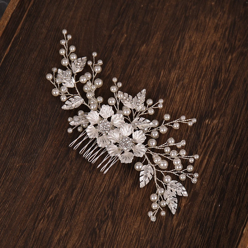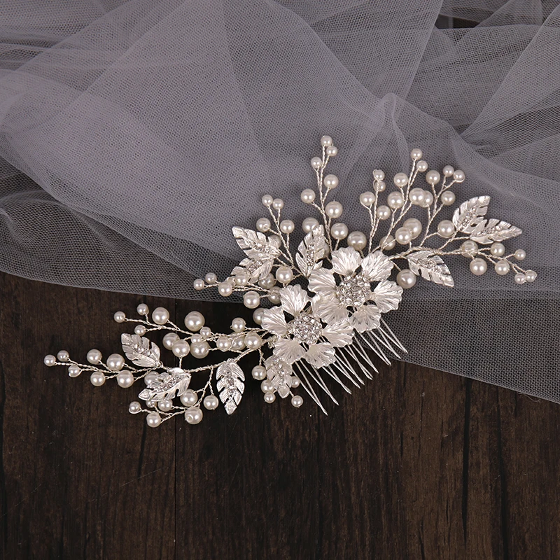 Crystal Pearls Hair Accessories with Comb Custom Bridal Hair Comb Hair Combs Flower Metal Ornamental Fashionable Niancan Opp Bag