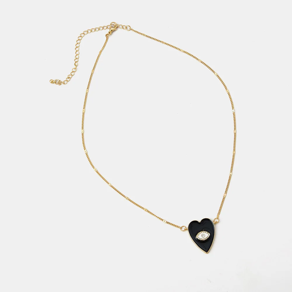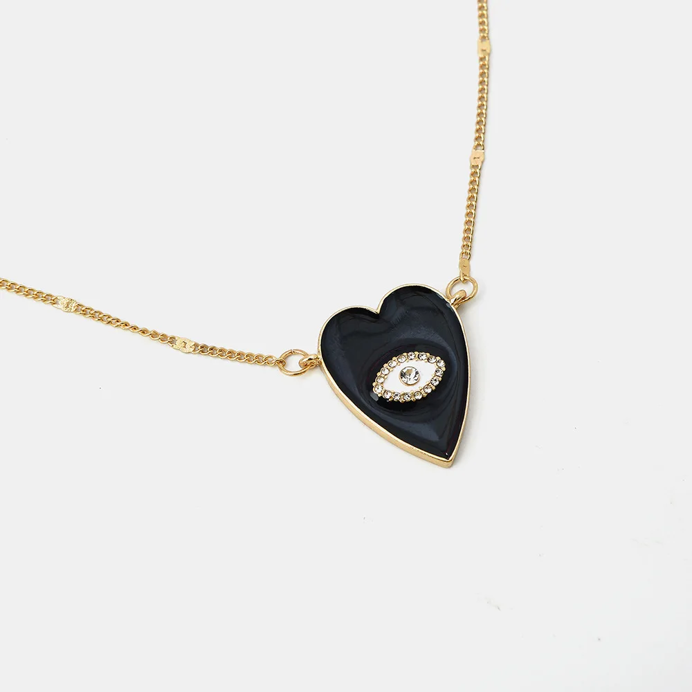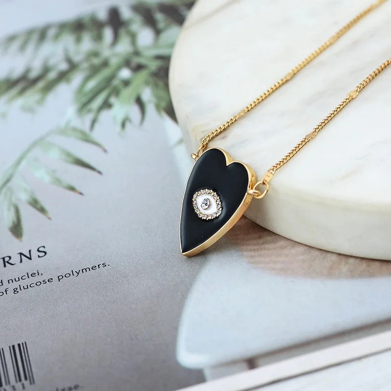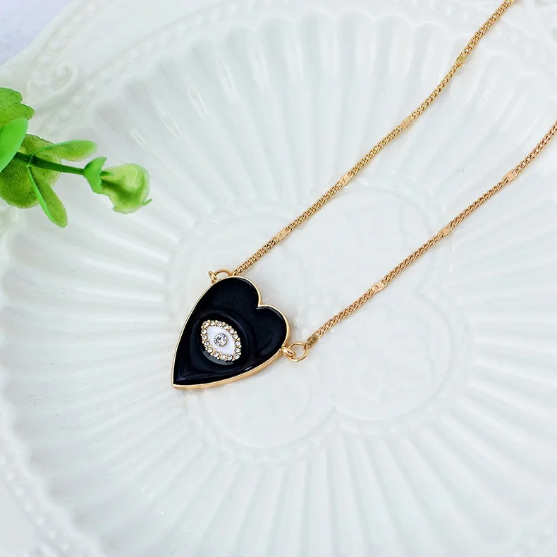 Cubic Zirconia Encrusted Turkish Evil Eyes Round Girl Lady Micro Pave CZ Copper Heart drop oil enamel Pendant Choker Necklaces