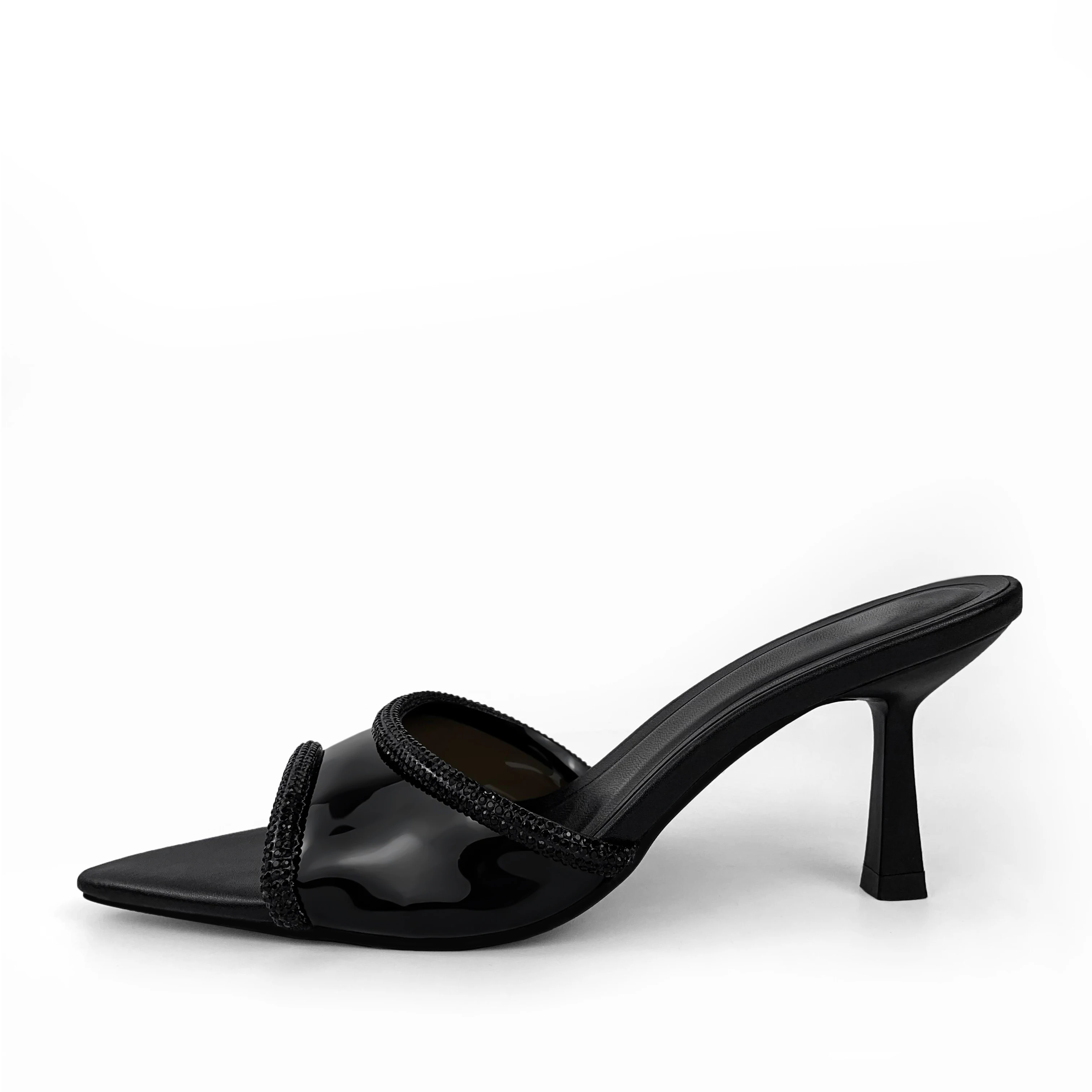 Custom Black transparent leather high heels shoes sandals women and ladies femmes chaussures pour femmes wedding for bride