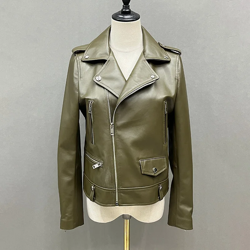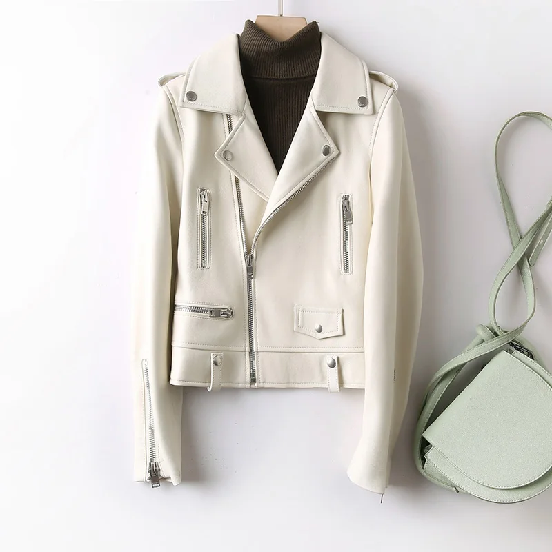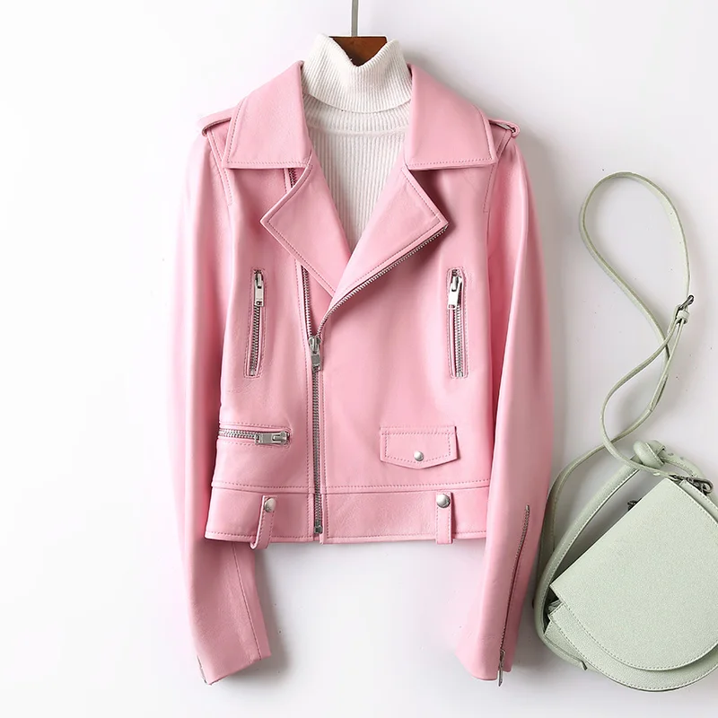 Custom Color Ladies Short Leather Coat Causal Leather Jacket Women