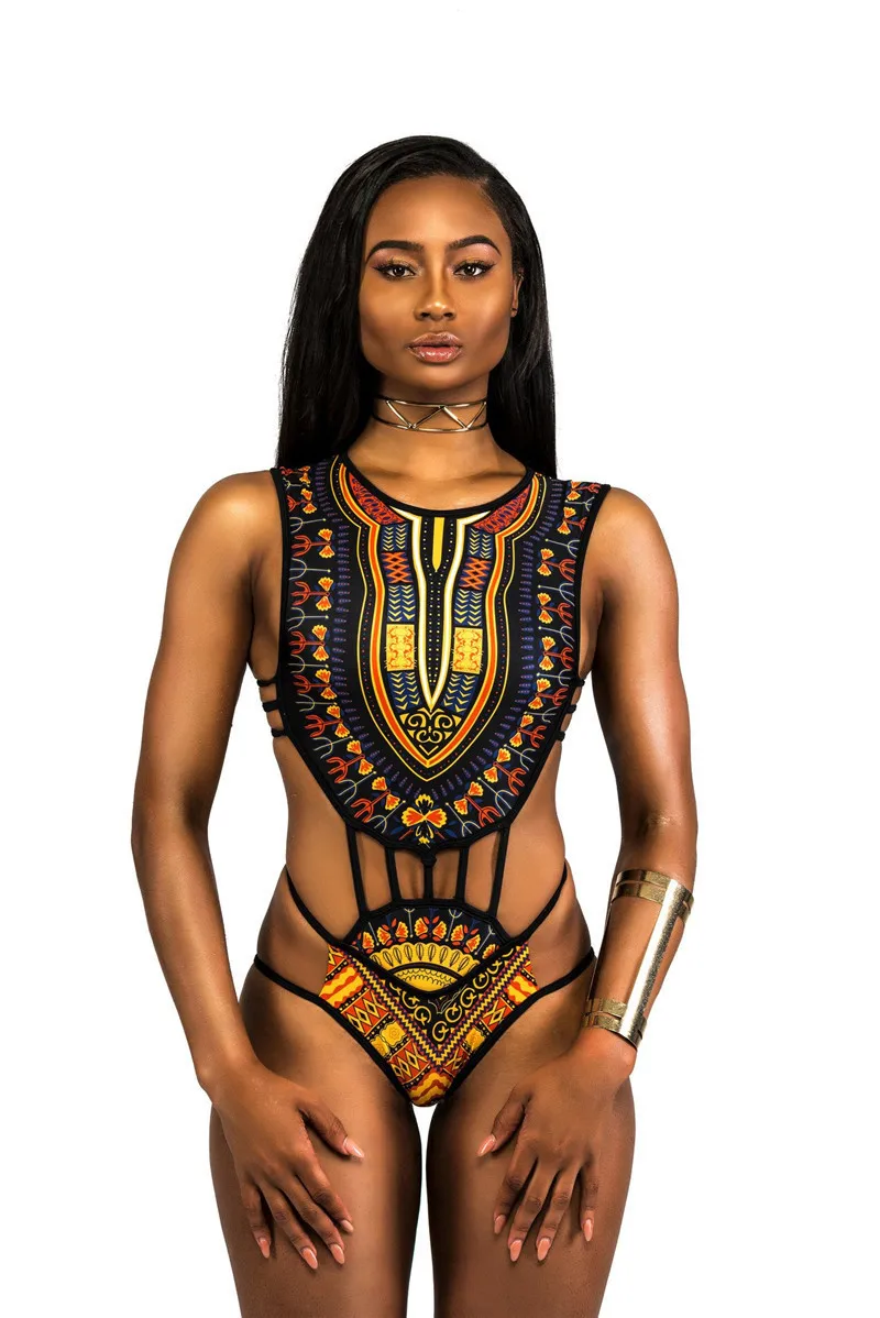 Custom Digital Printed Swimwear Wholesale African Print Swimsuit One-piece Multi-rope Sexy Swimwear