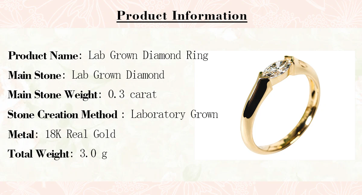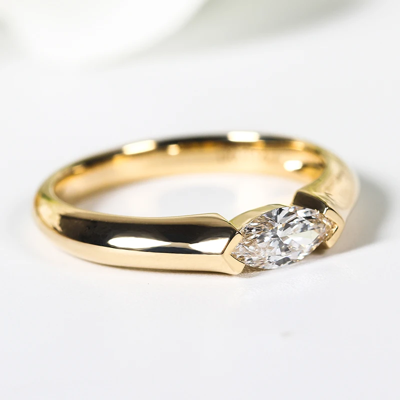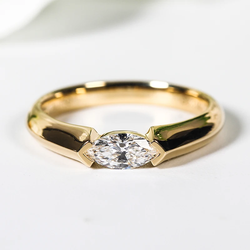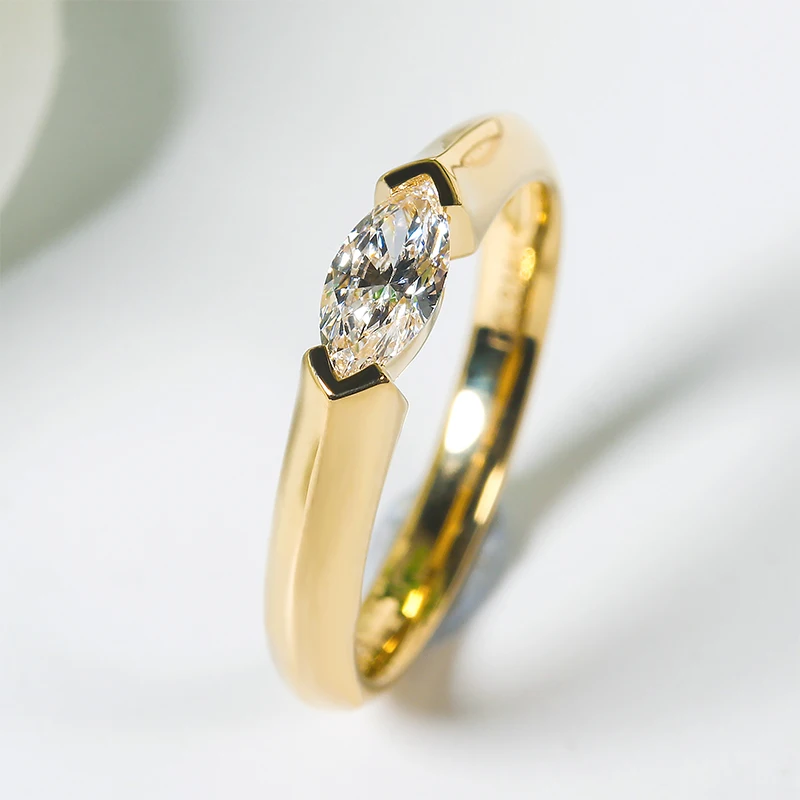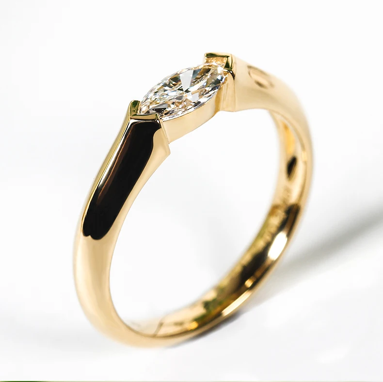 custom jewelry solid 18k gold marquise shape lab diamonds Synthetic HPHT / CVD diamond rings