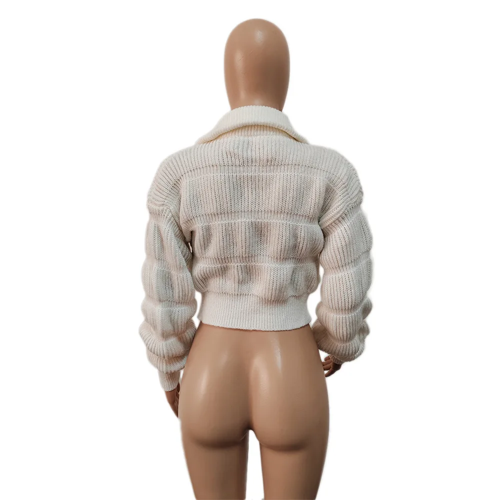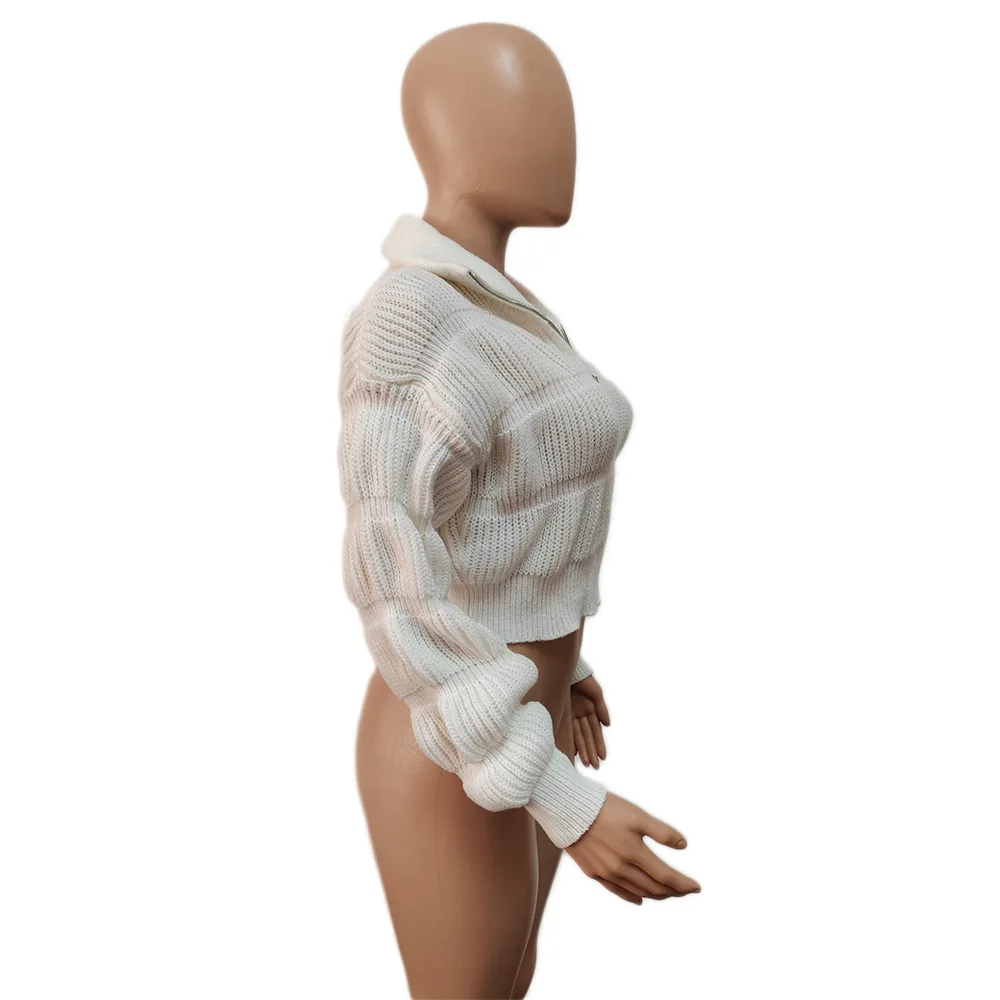 Custom Logo Autumn New Long Sleeve Zipper Autumn Sweater Women Stacked Sleeve Knitted Cardigan For Women