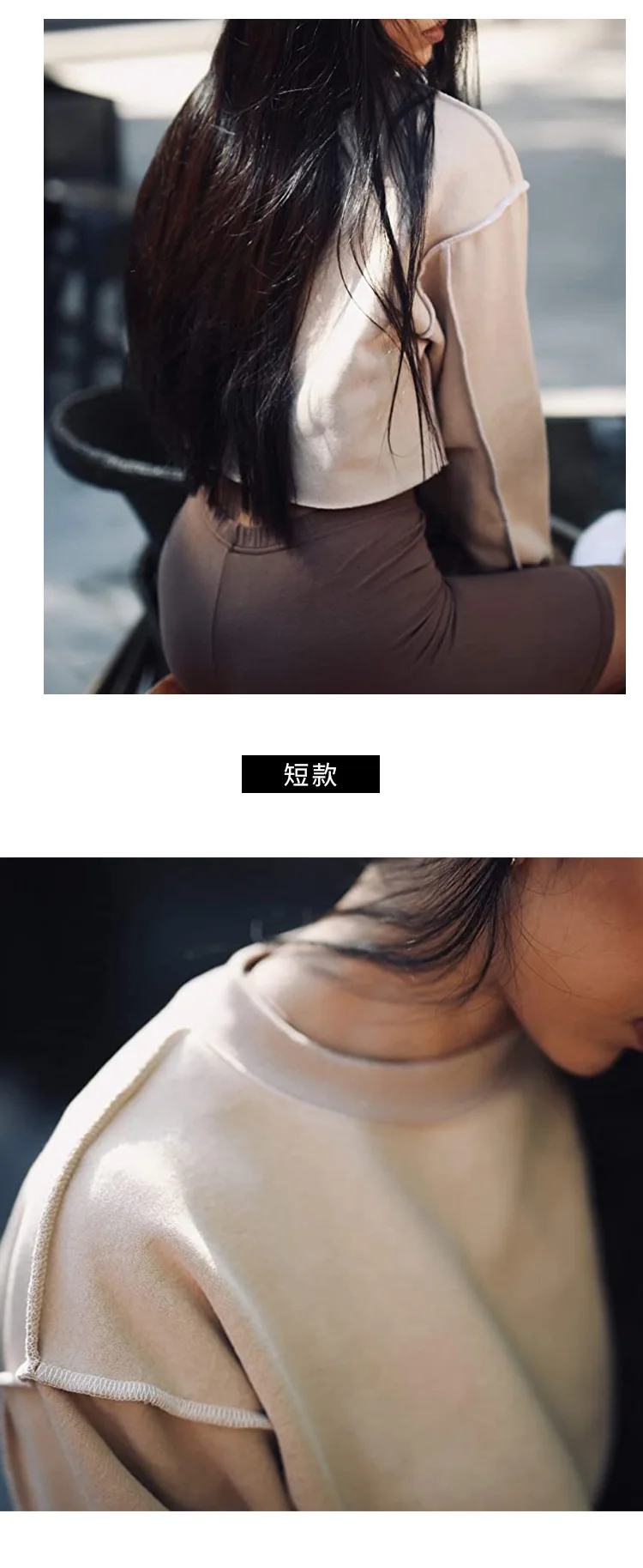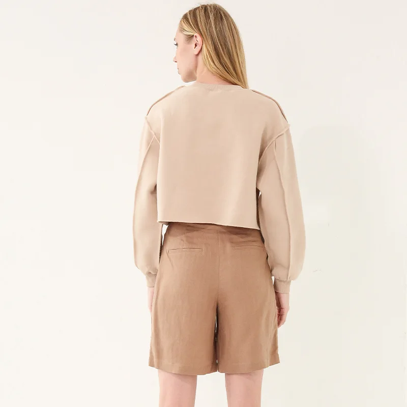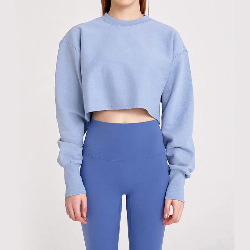 Custom logo crew neck cotton fleece sweatshirt raw edge for fitness outfit wear with yoga biker shorts legging match set