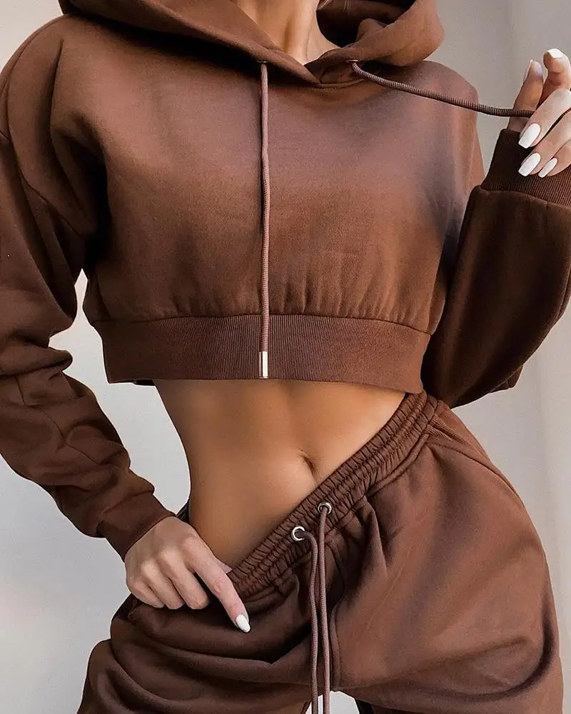Custom logo High quality 280gsm Cotton French Terry Y2K knit two piece set women clothing joggers and cropped top hoodie set