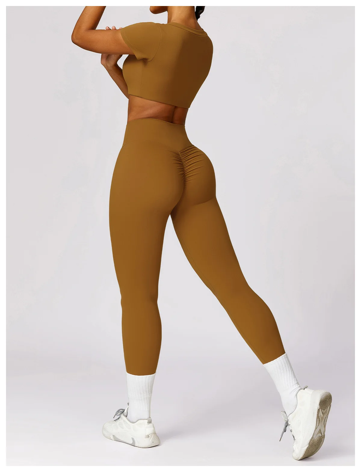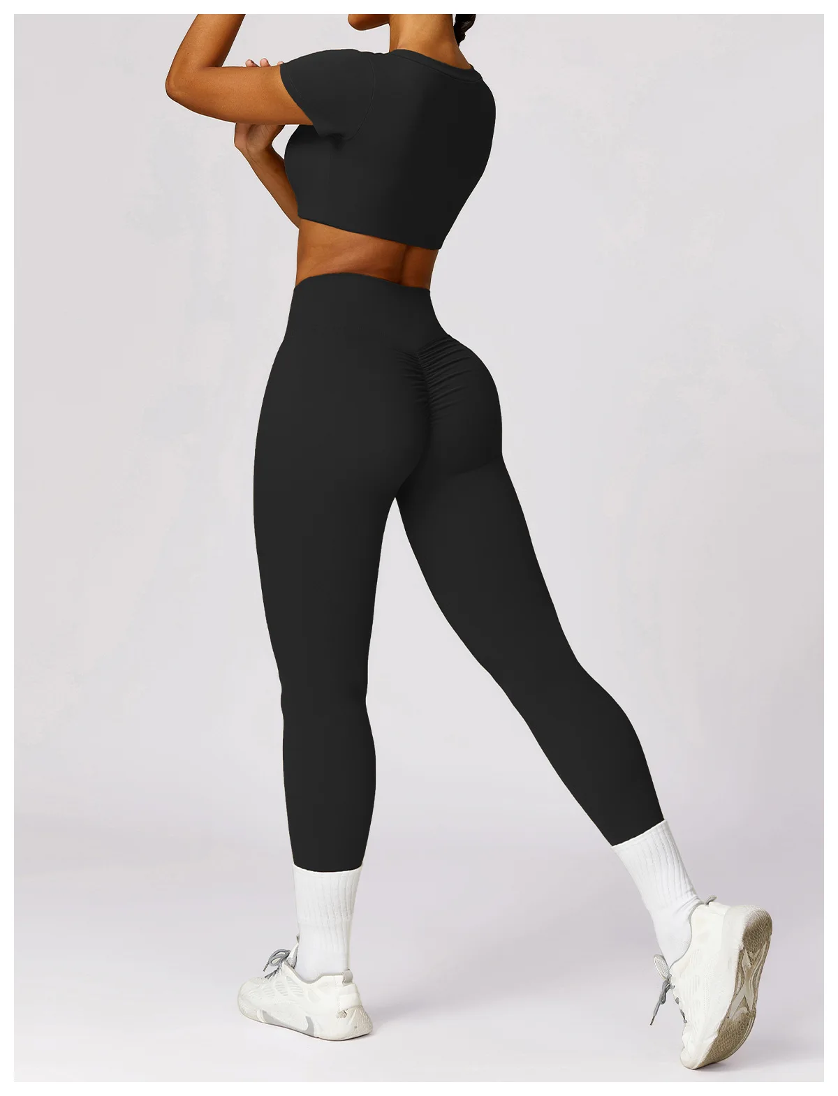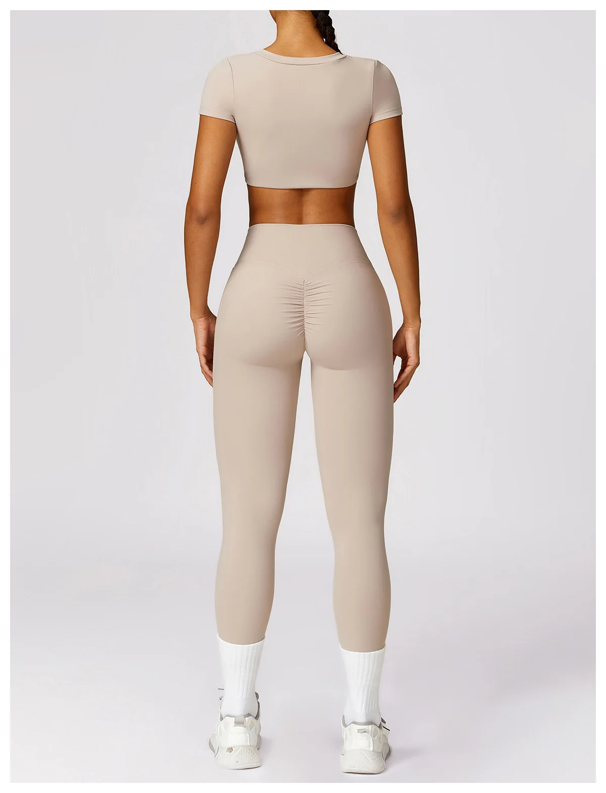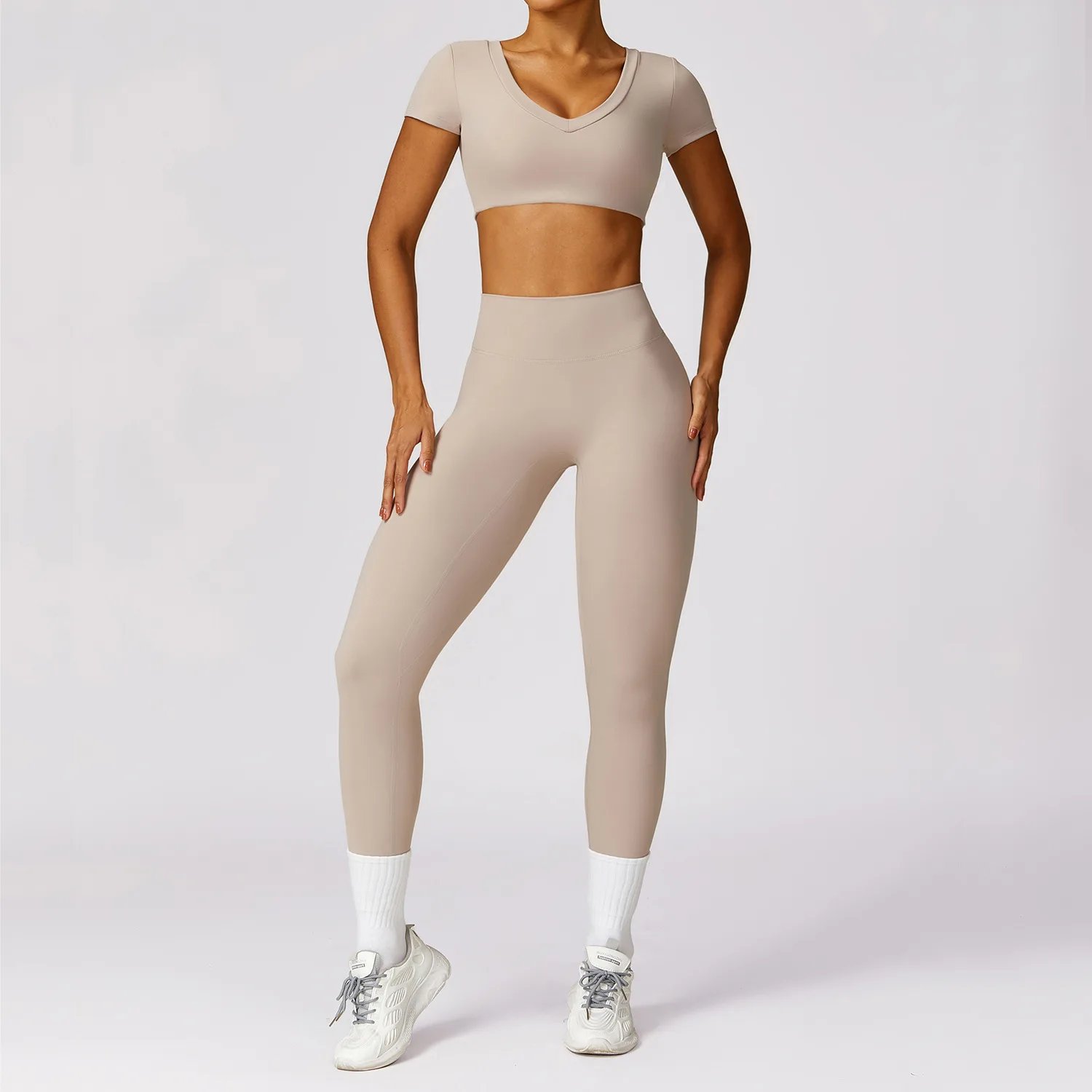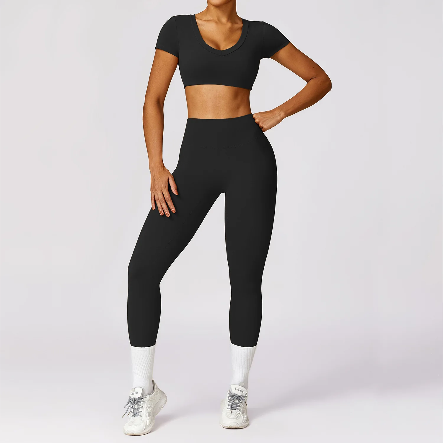 Custom logo High Quality Gym Sports Workout Short Sleeve Sweatshirt Leggings Outfit 2024 Women Fitness Yoga Sets