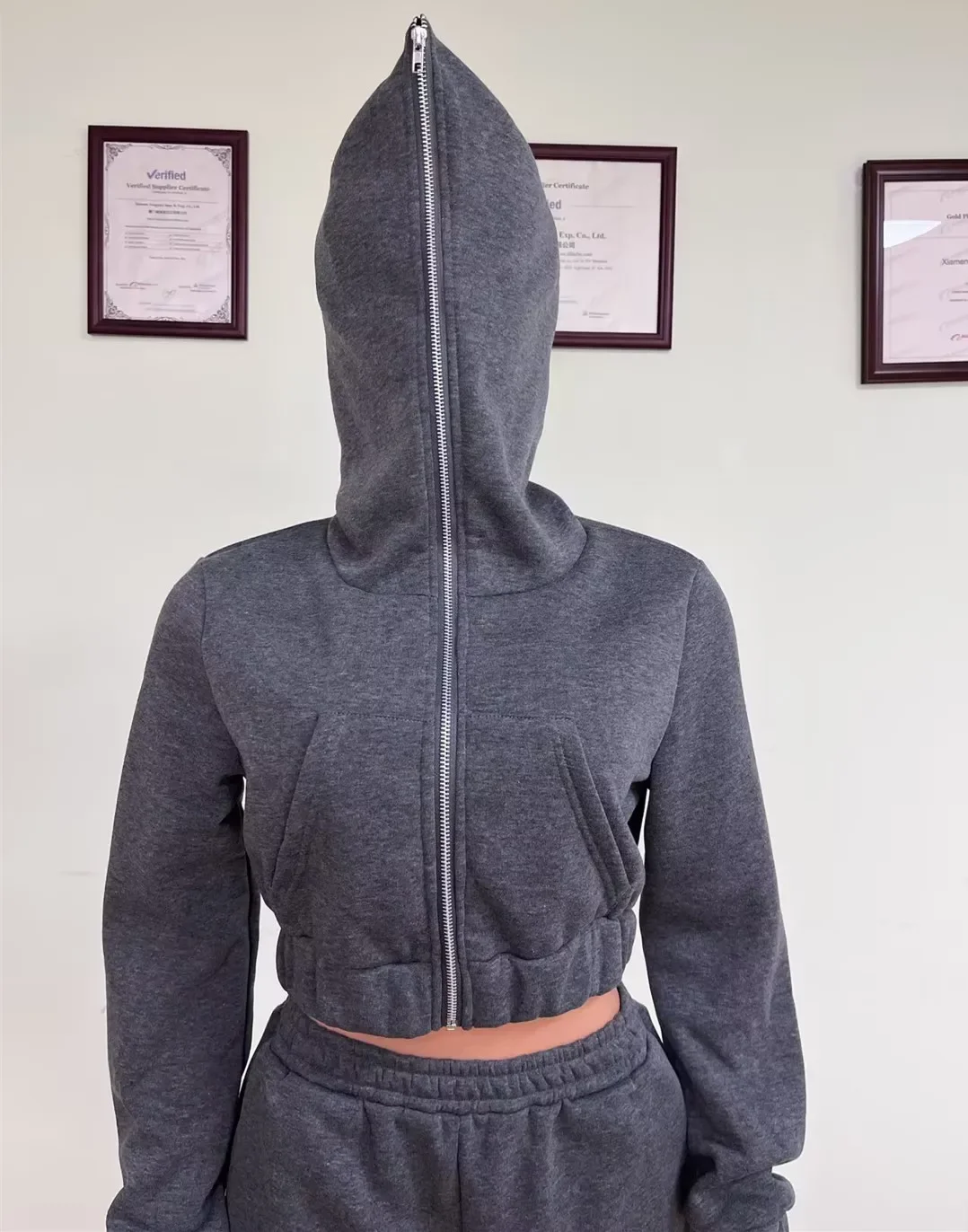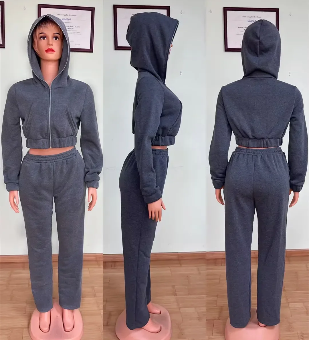 Custom Logo New Fall Sweatshirt Sets For Women Two Pieces Women's Jogger Sweatsuits Zipper Crop Hoodies And Trousers Set