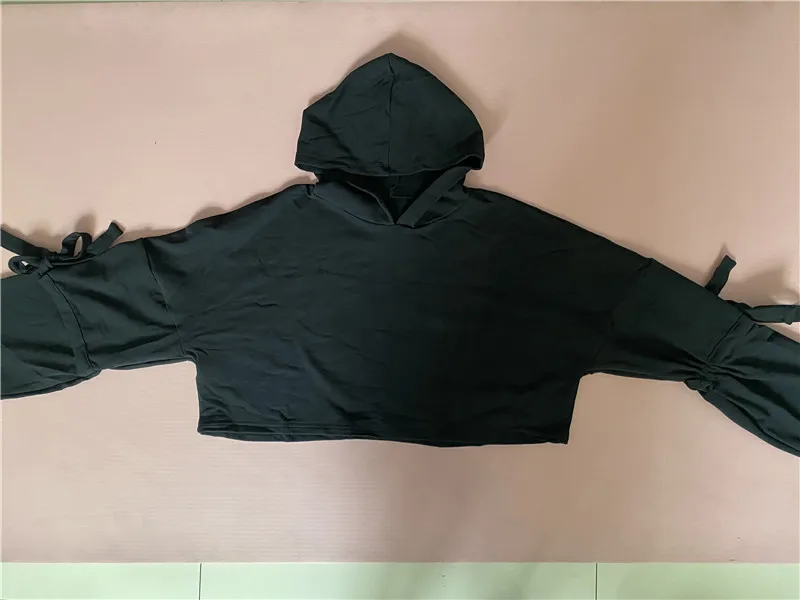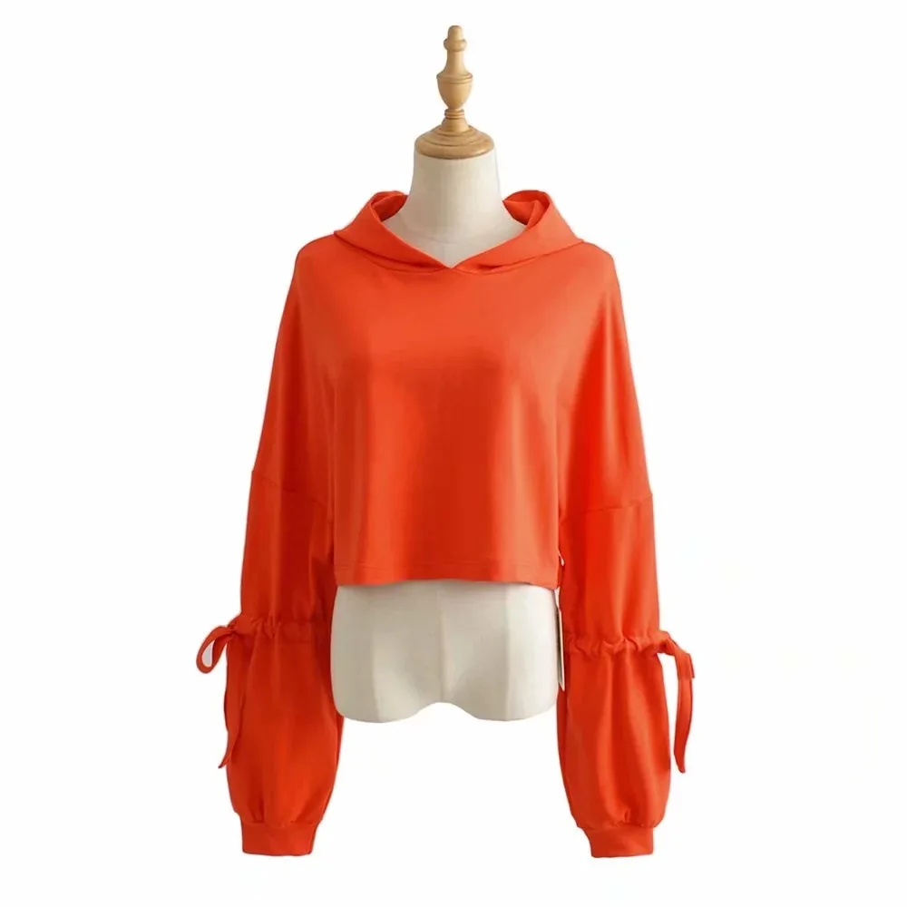 Custom logo no minimum extra Long sleeve bow tie 100 cotton loose fit sweaters crop tops hoodie sweatshirt