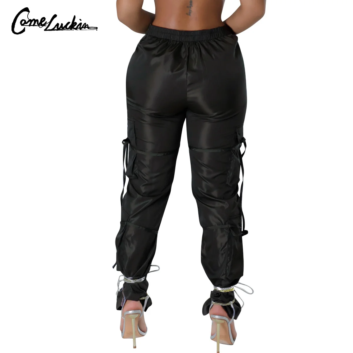 Custom Logo Solid Color Cargo Pants Streetwear Big Pocket Pants Low Waist Baggy Women's Trousers