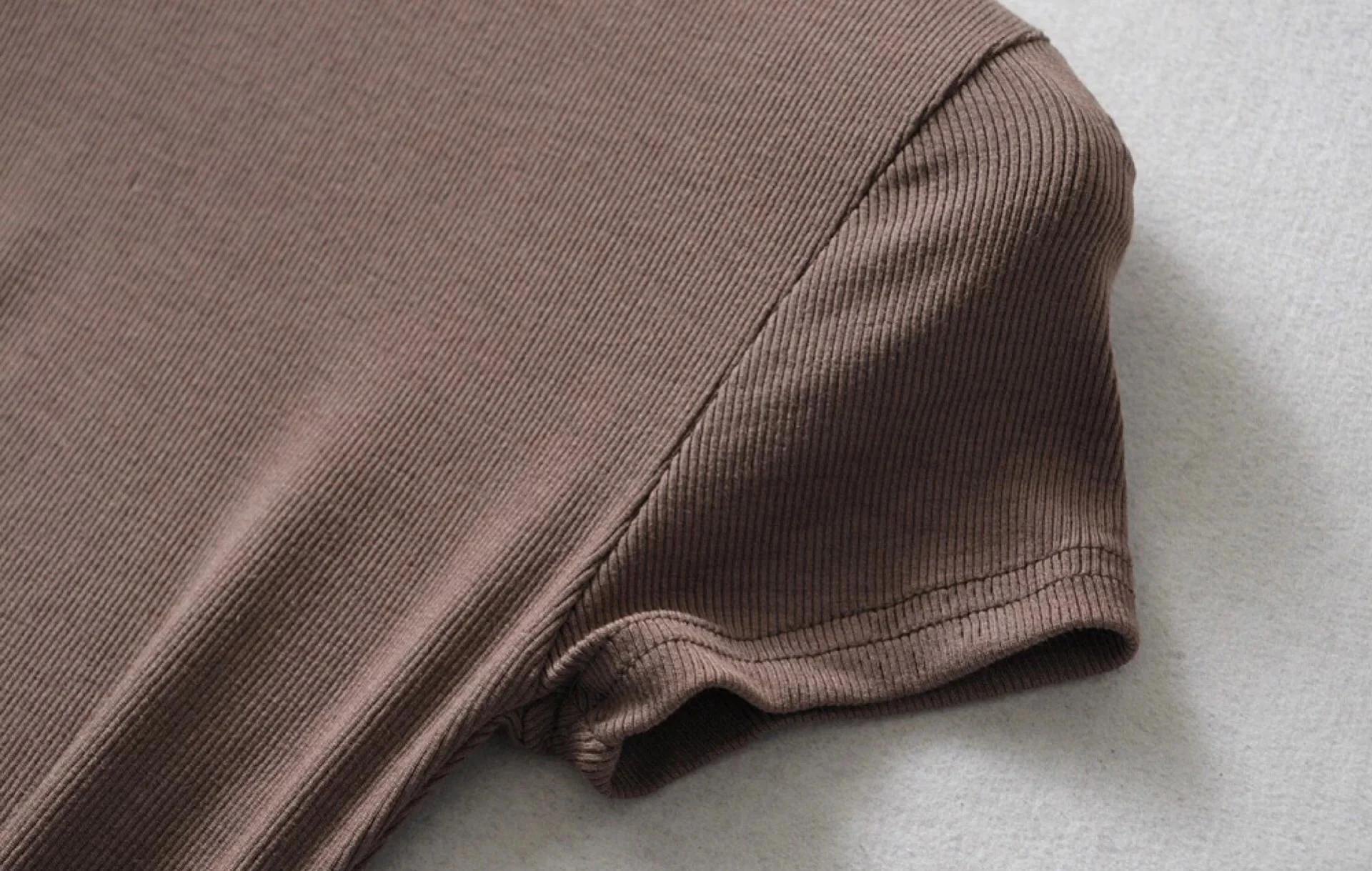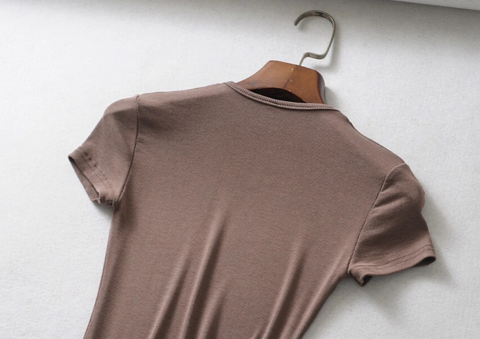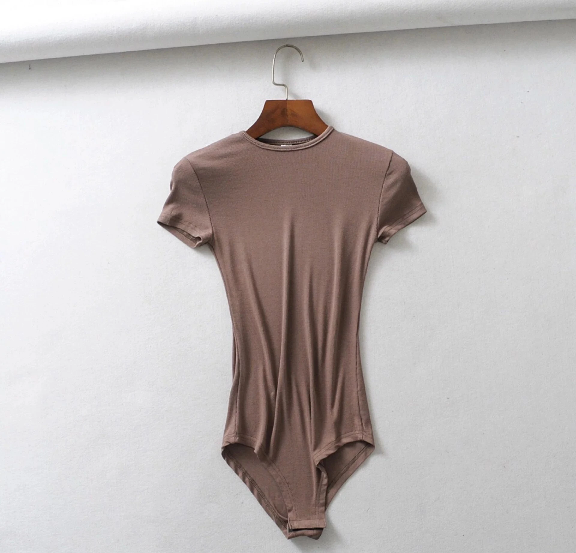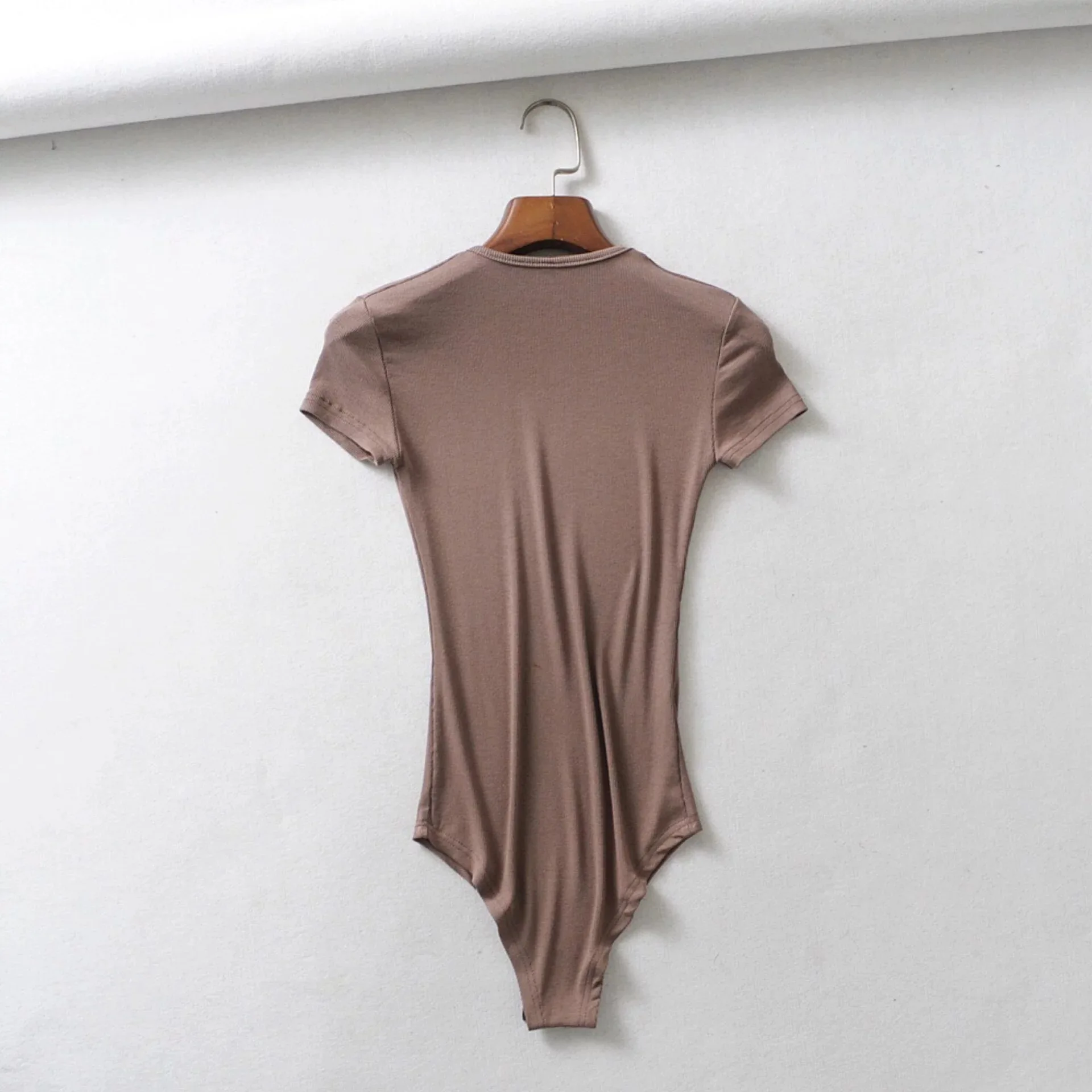 Custom logo summer casual ladies basic T shirt top crew neck bodycon fitted short sleeve rib woman bodysuits