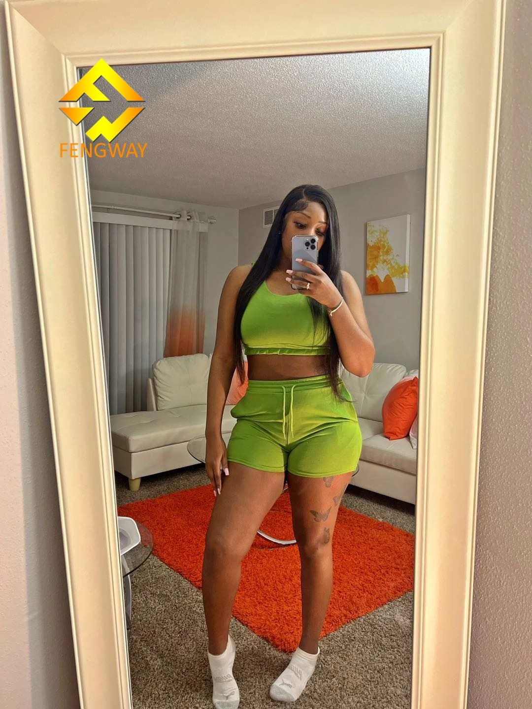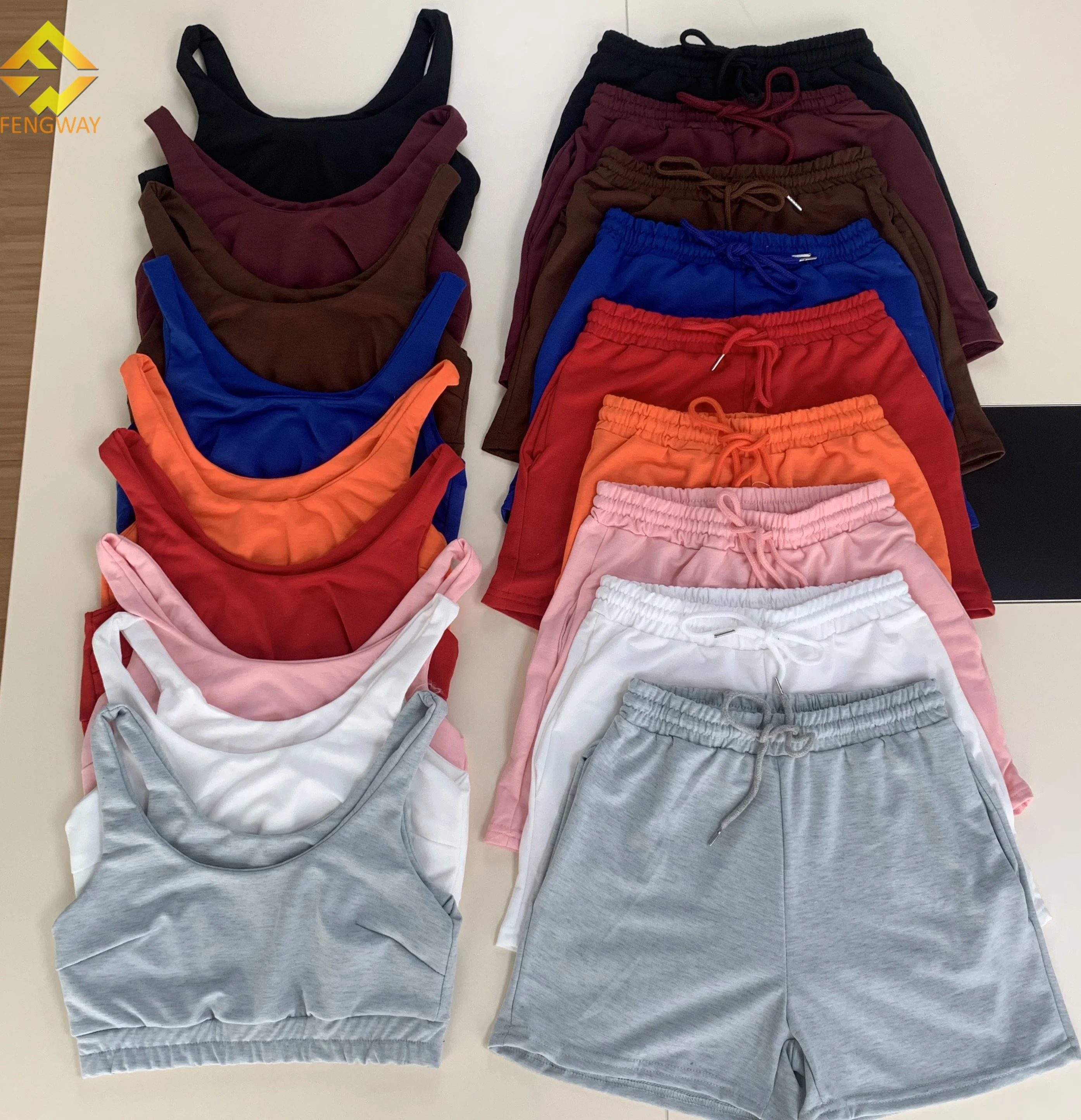 2022 summer outfits women vest crop top matching set sweat biker shorts set two pieces woman