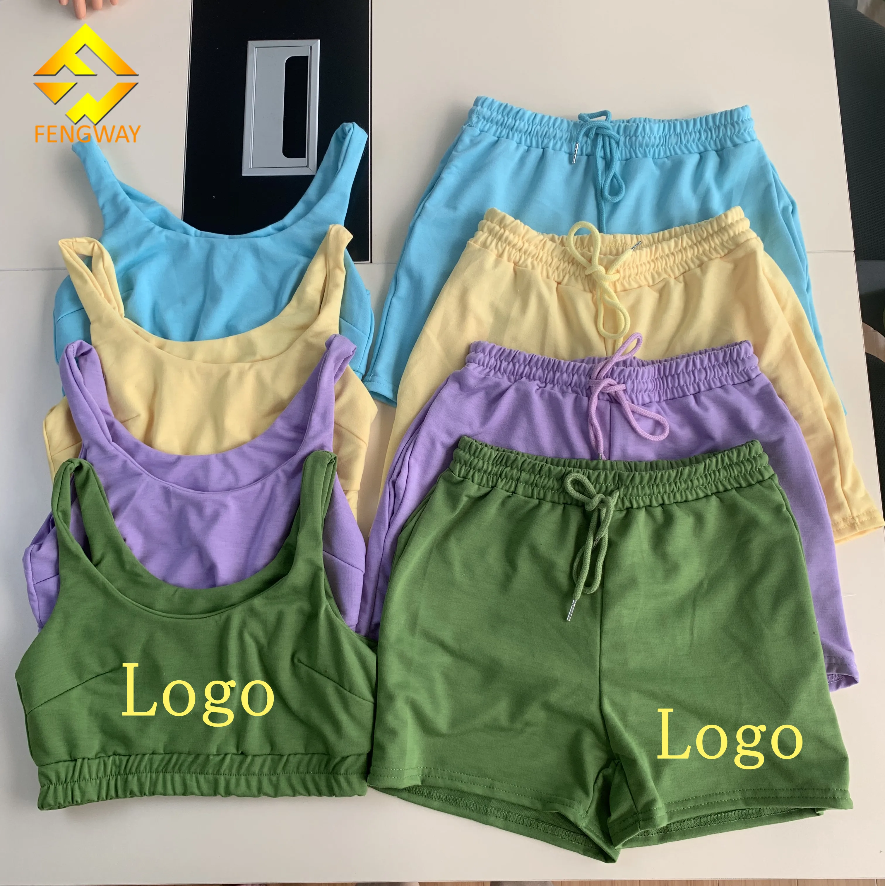 Custom logo summer outfits women Clothing vest crop Tank top matching set Joggers sweat biker 2 two pieces shorts set women