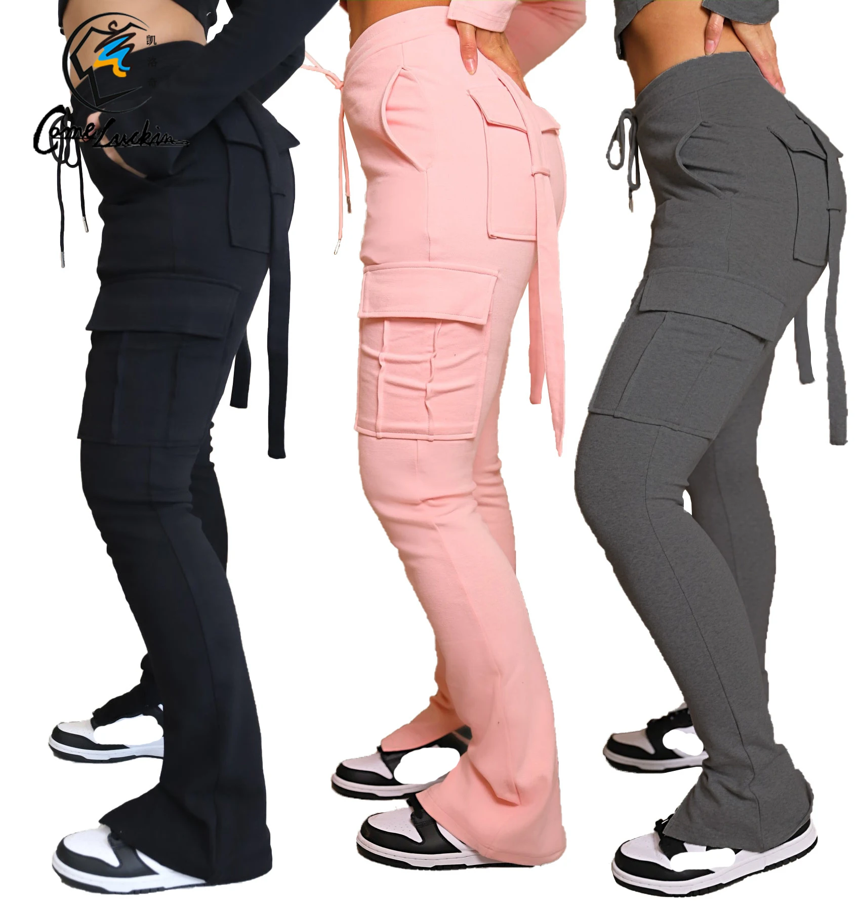 Custom Logo Winter Casual Streetwear Women Cargo Pants Women Clothing Multi Pockets Joggers Legging Women's Pants & Trousers