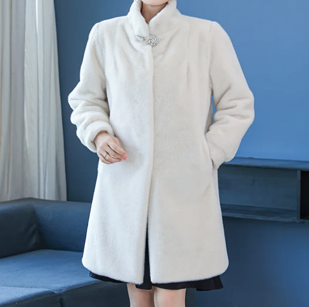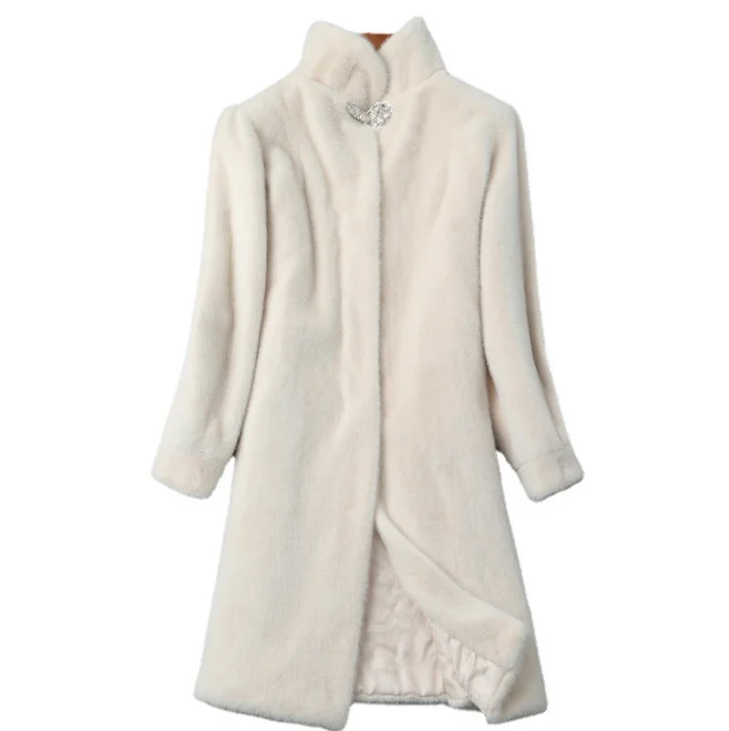Custom logo Winter Thick Faux Rabbit Fur Coat Women Korean Loose Plush Long Sleeve Women's Faux Mink Fur Coat