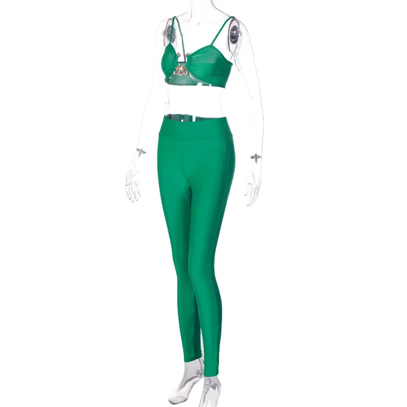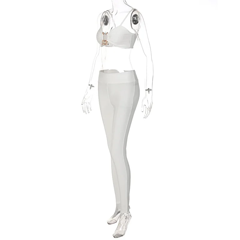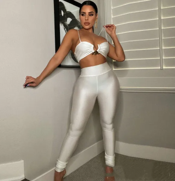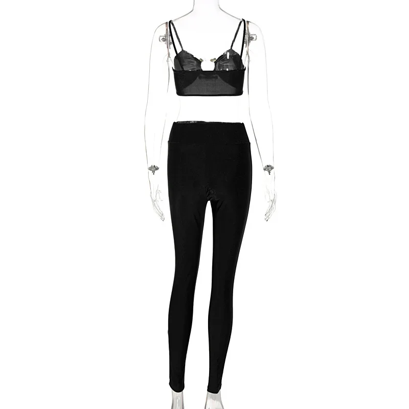 Custom logo with Metal ornament on bra Sexy Camisole + Tight Pants Two-piece Set