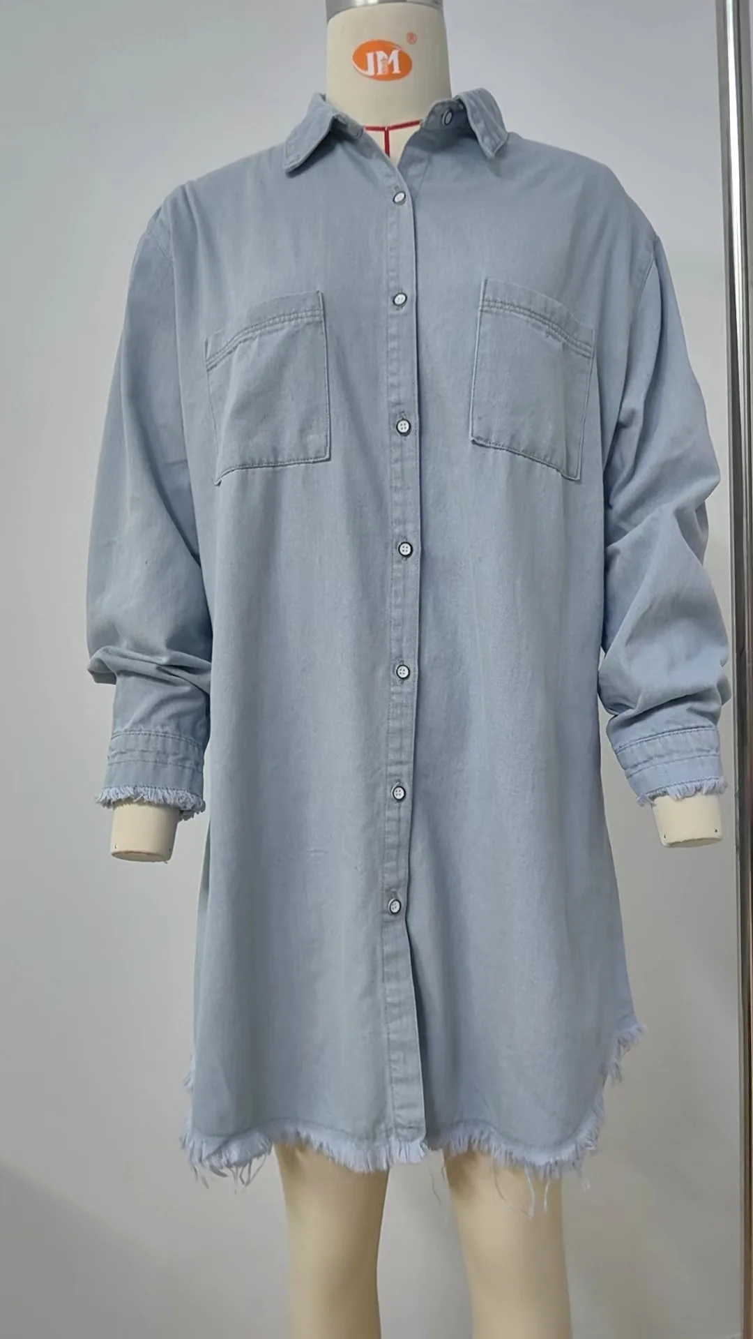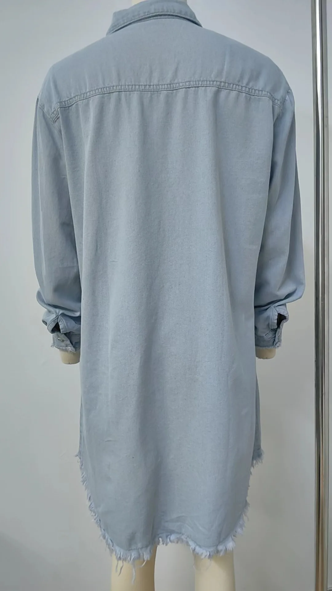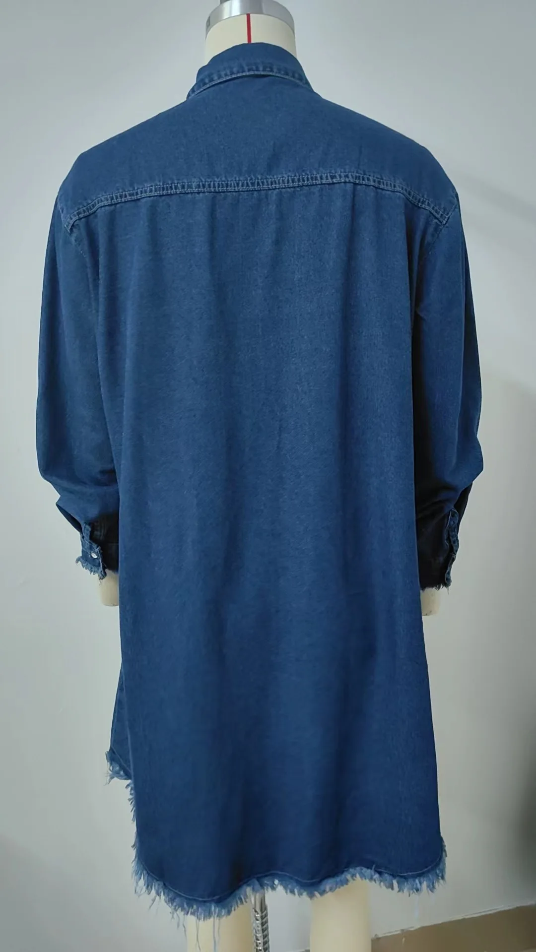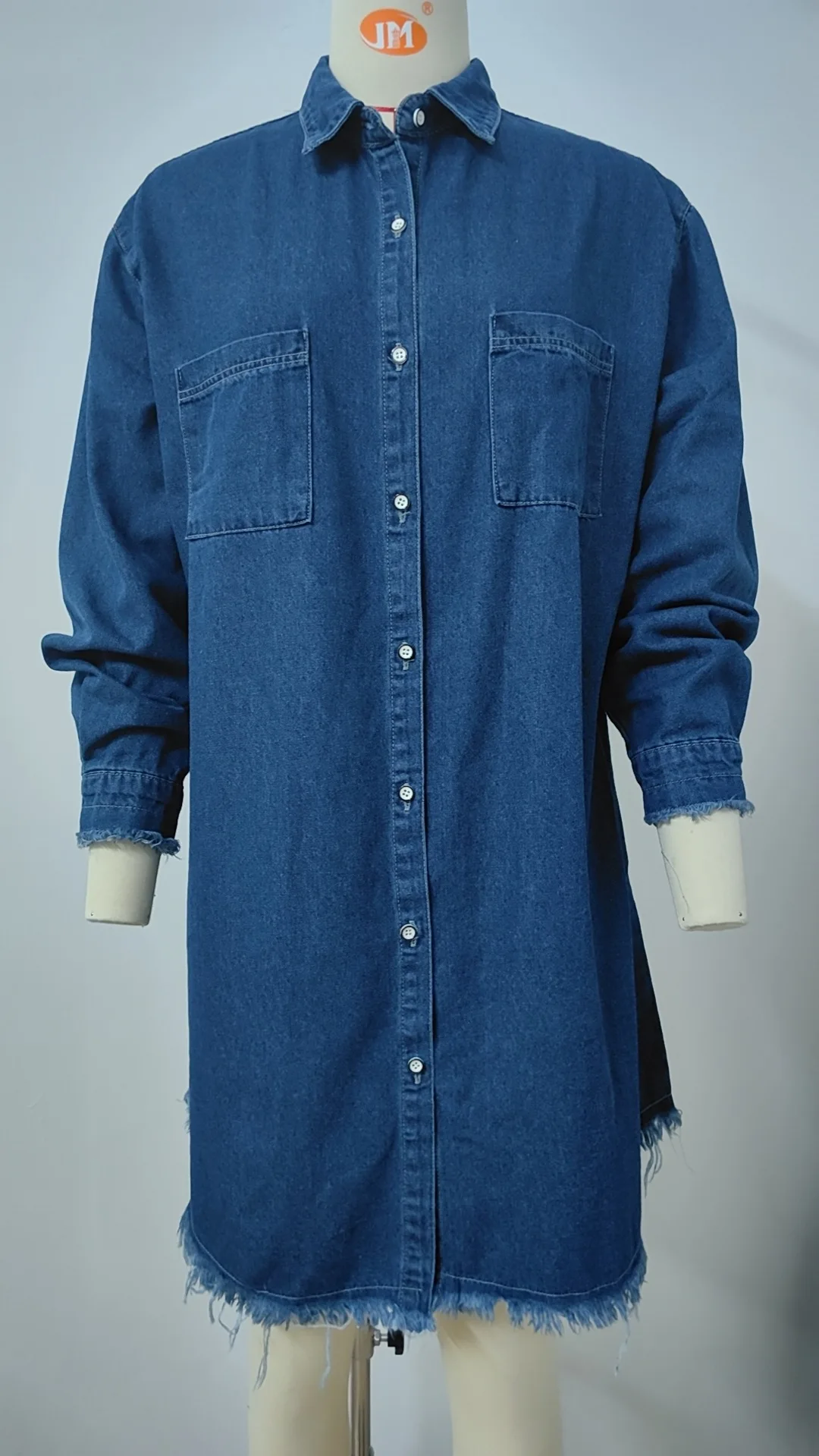 Custom Logo Women Casual Denim Dress For Women Long Sleeve Dress Loose Ladies Vintage Midi Dresses