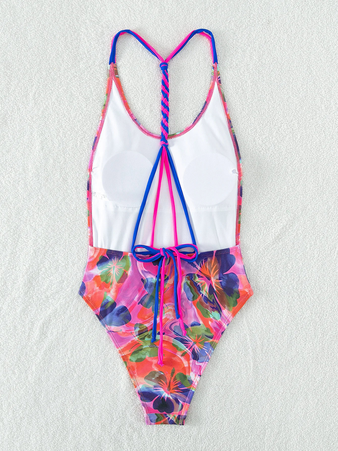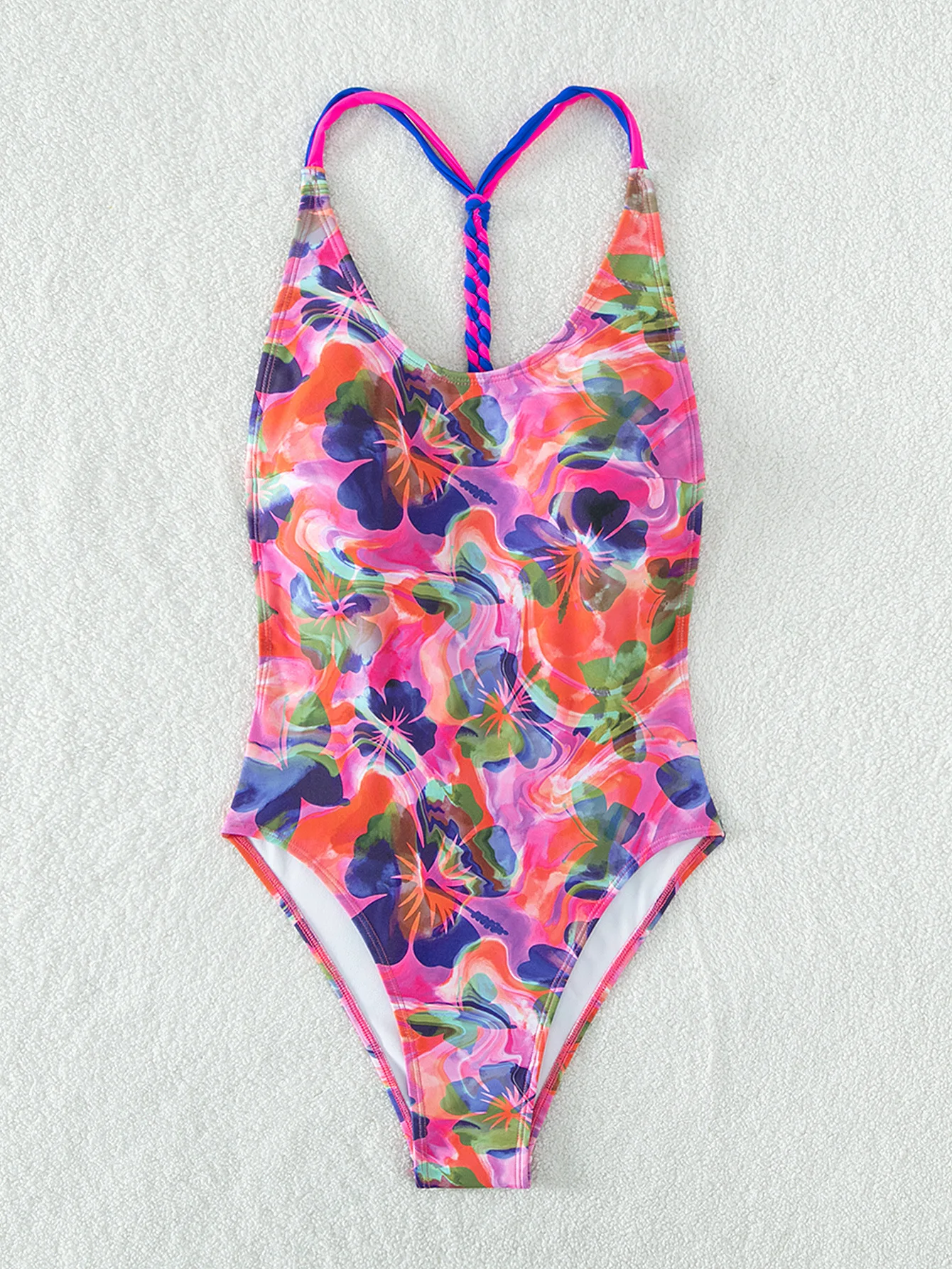 Custom Made High Quality One Piece Swimsuits Women's Floral Print Spaghetti Strap Bathing Suit 2 Piece Swimwear 2024