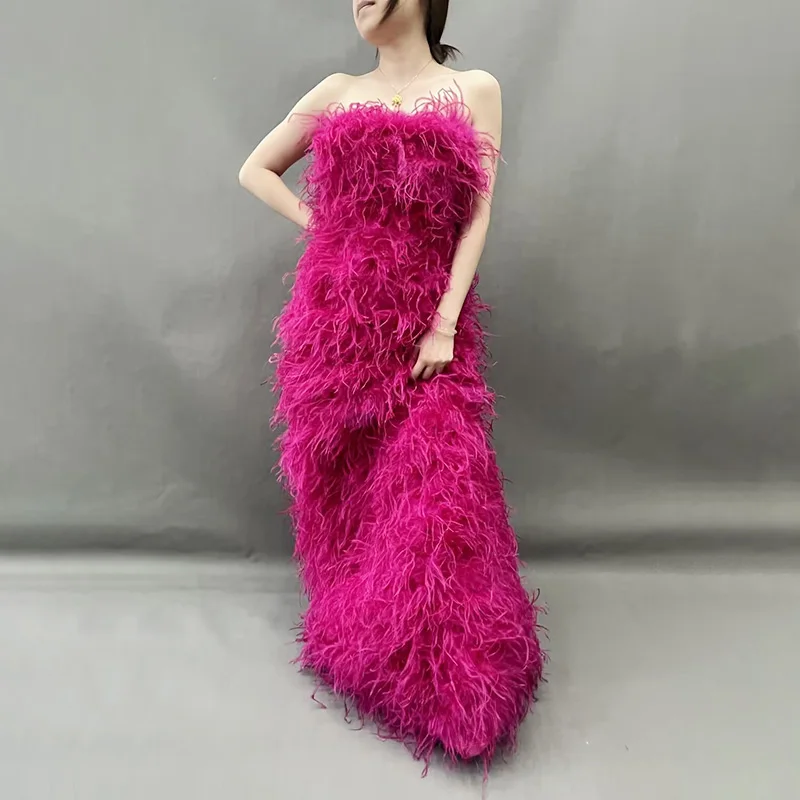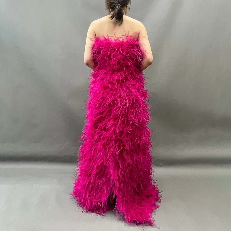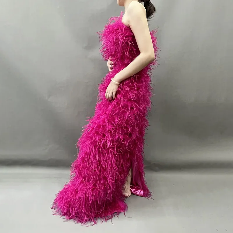 Custom Make Luxury Real Ostrich Feather Dress Fluffy Elegant Evening Dress
